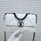 19 FLAP BAG 26CM WHITE BLACK HARDWARE