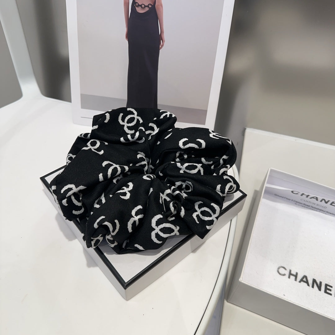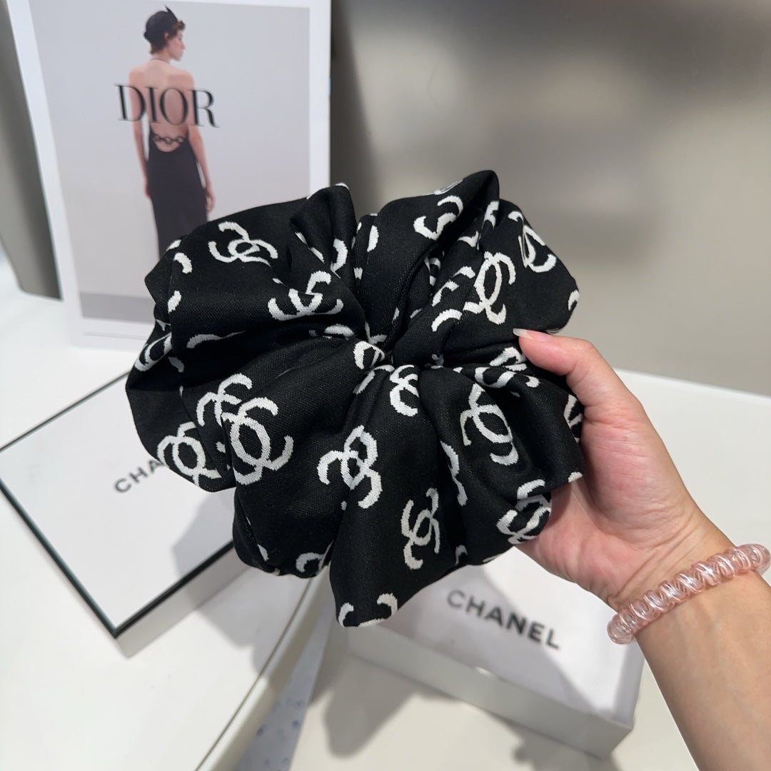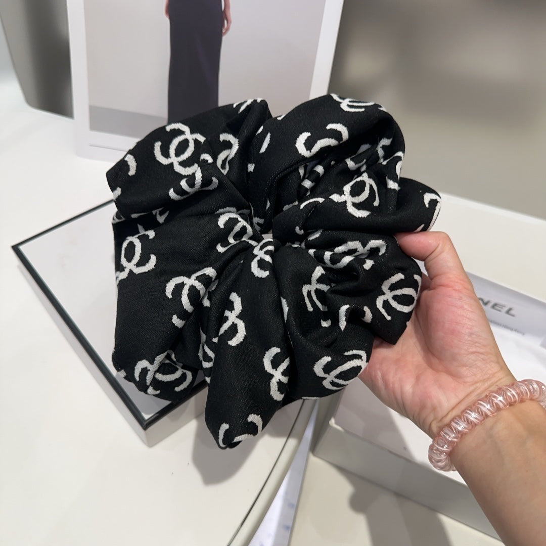 BLACK MONOGRAM FABRIC SCRUNCHIE 412544