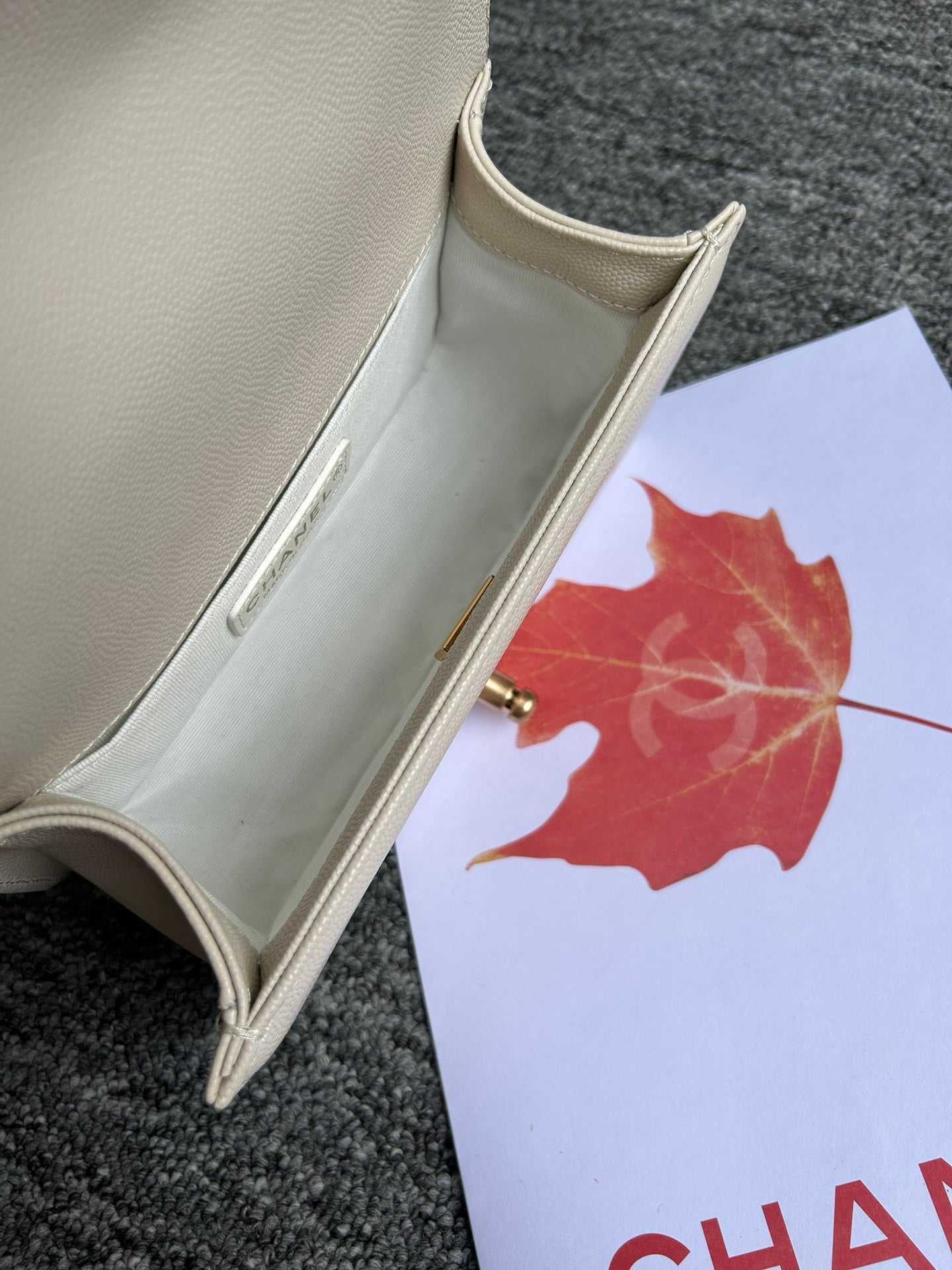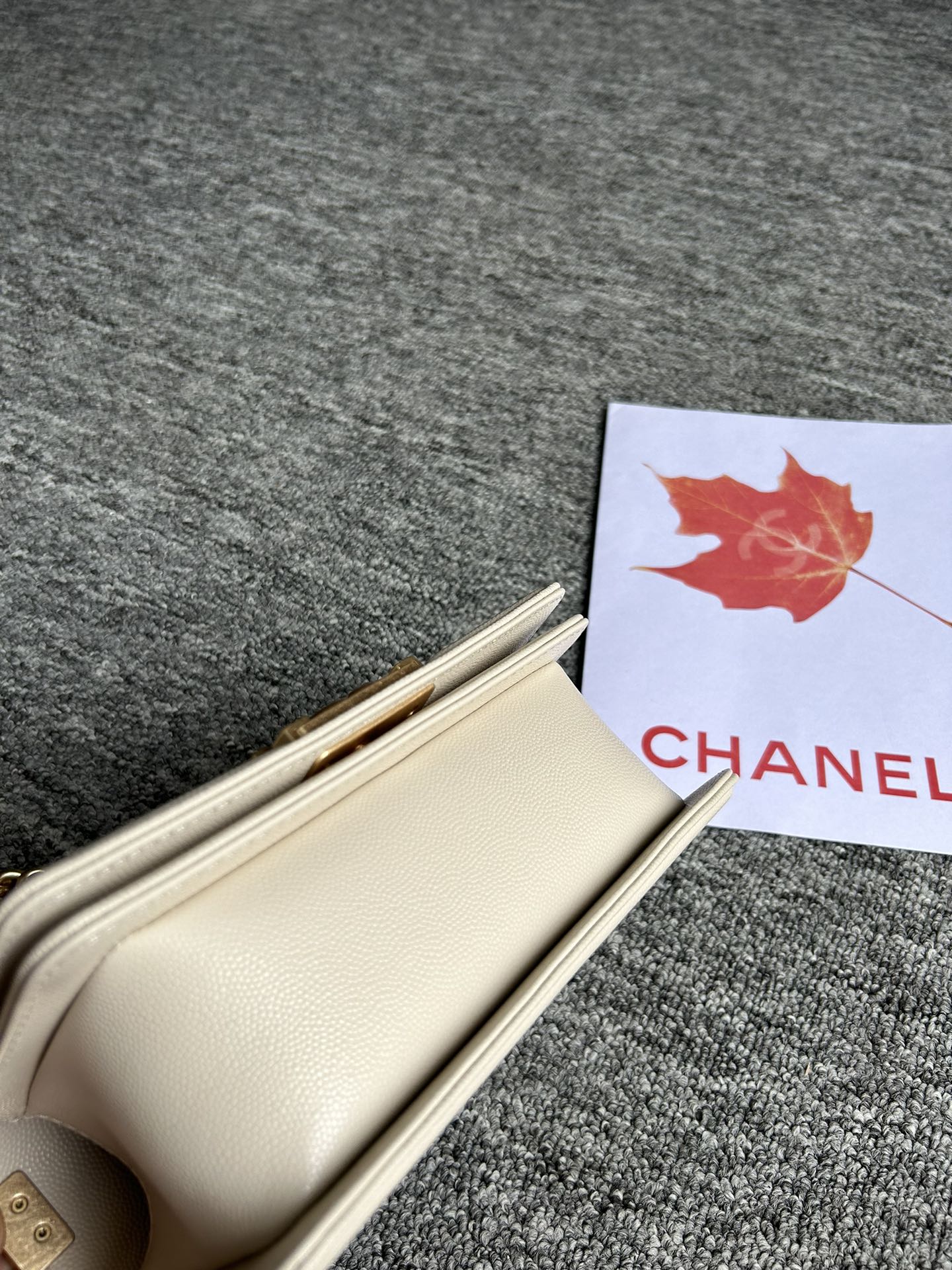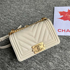 BOY BAG SMALL 20 CREAM CHEVRON CAVIAR GOLD HARDWARE