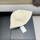BUCKET HAT WHITE KNITTED FABRIC WITH RABBIT FUR 428092