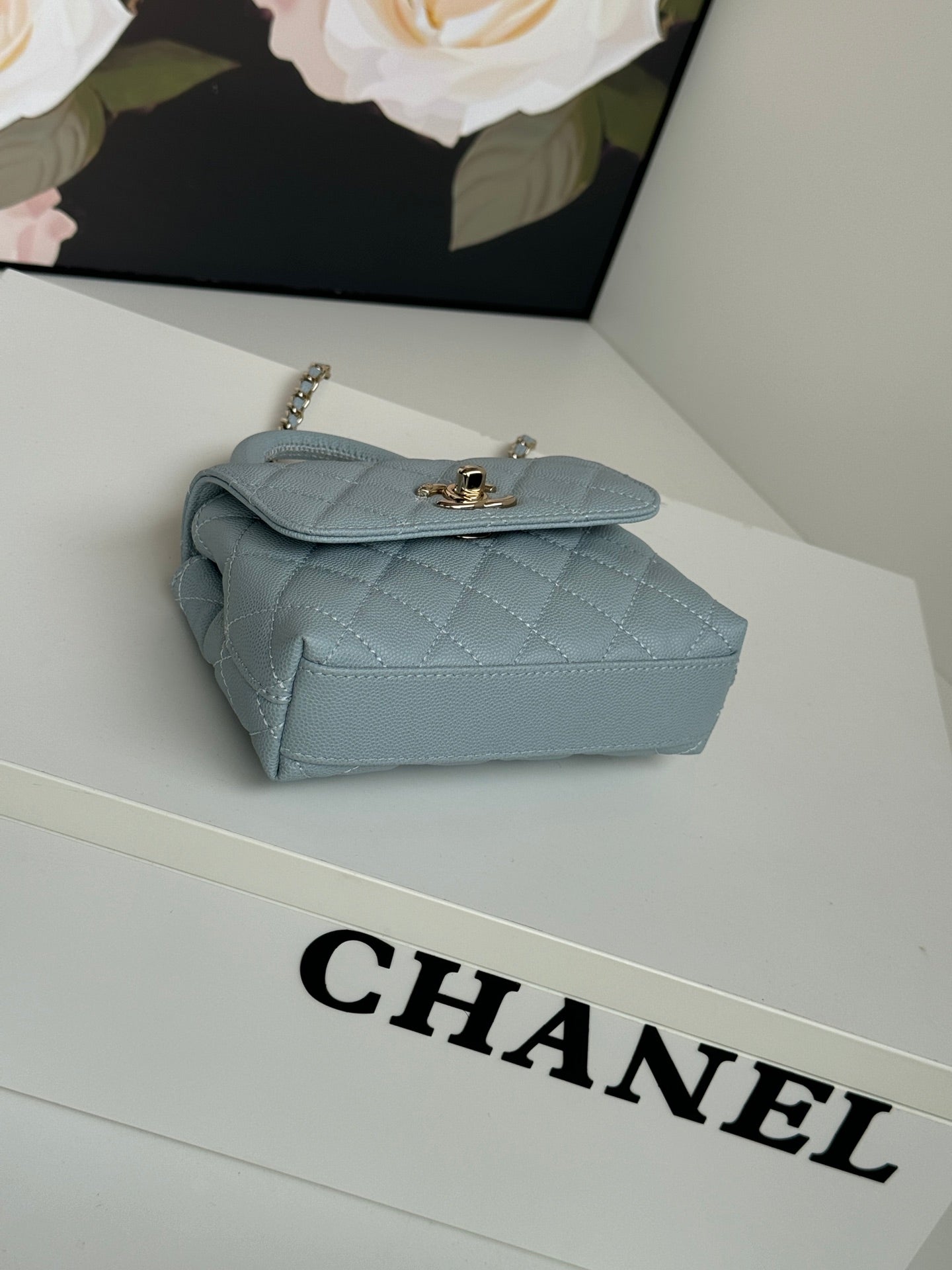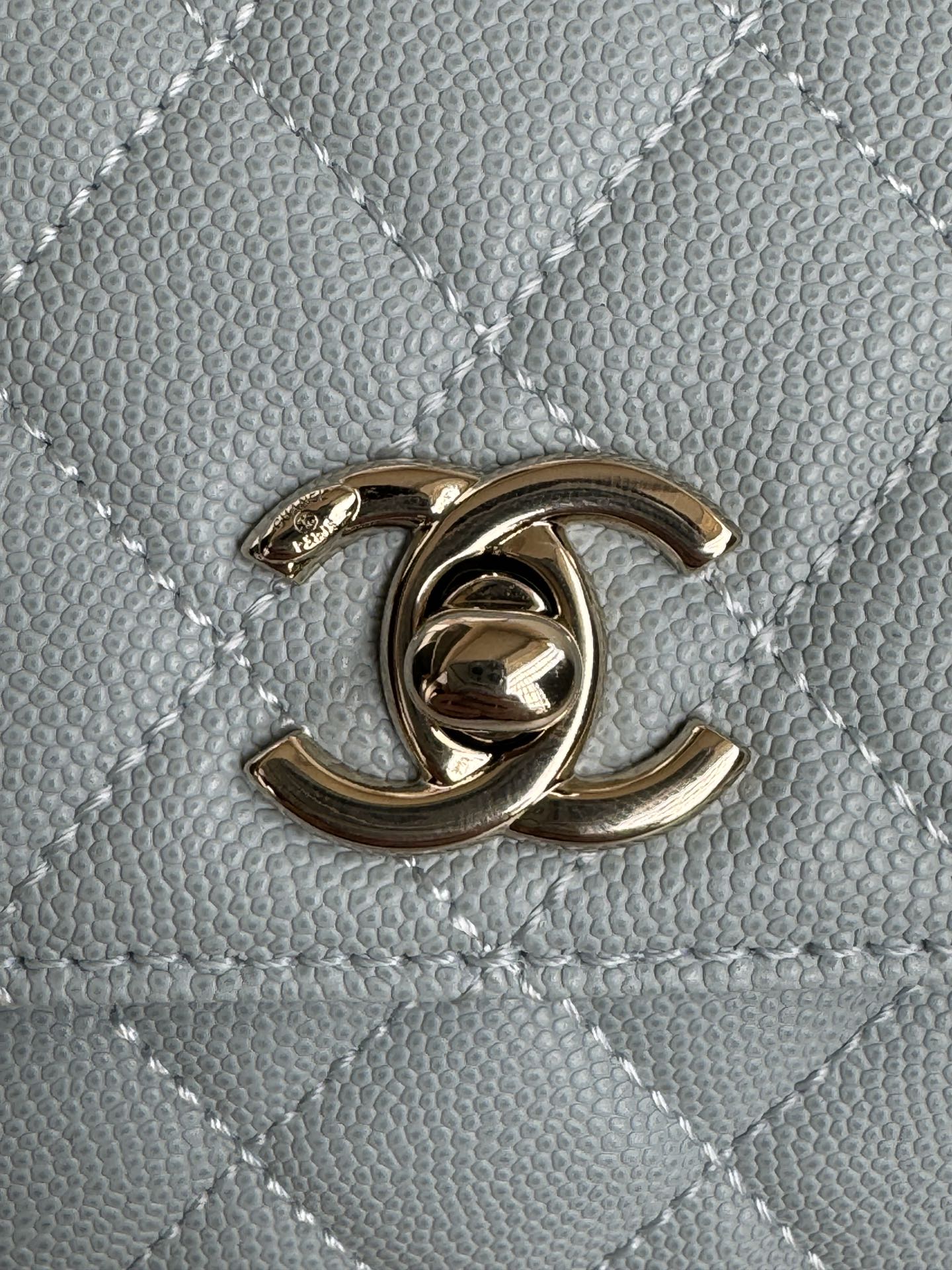 CC 24K Coco Handle Nano 14.5cm Cloud Blue Grained Calfskin Gold Hardware