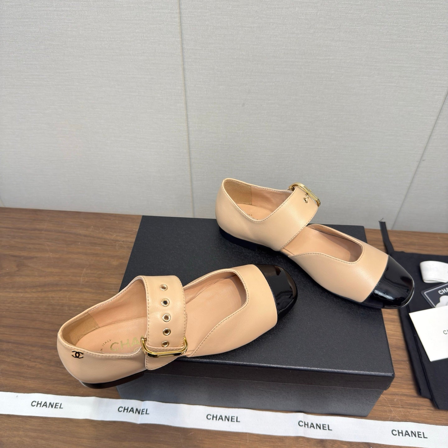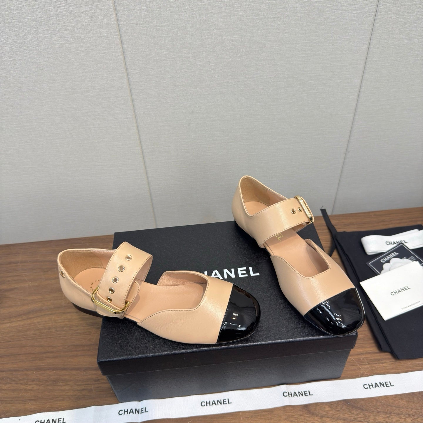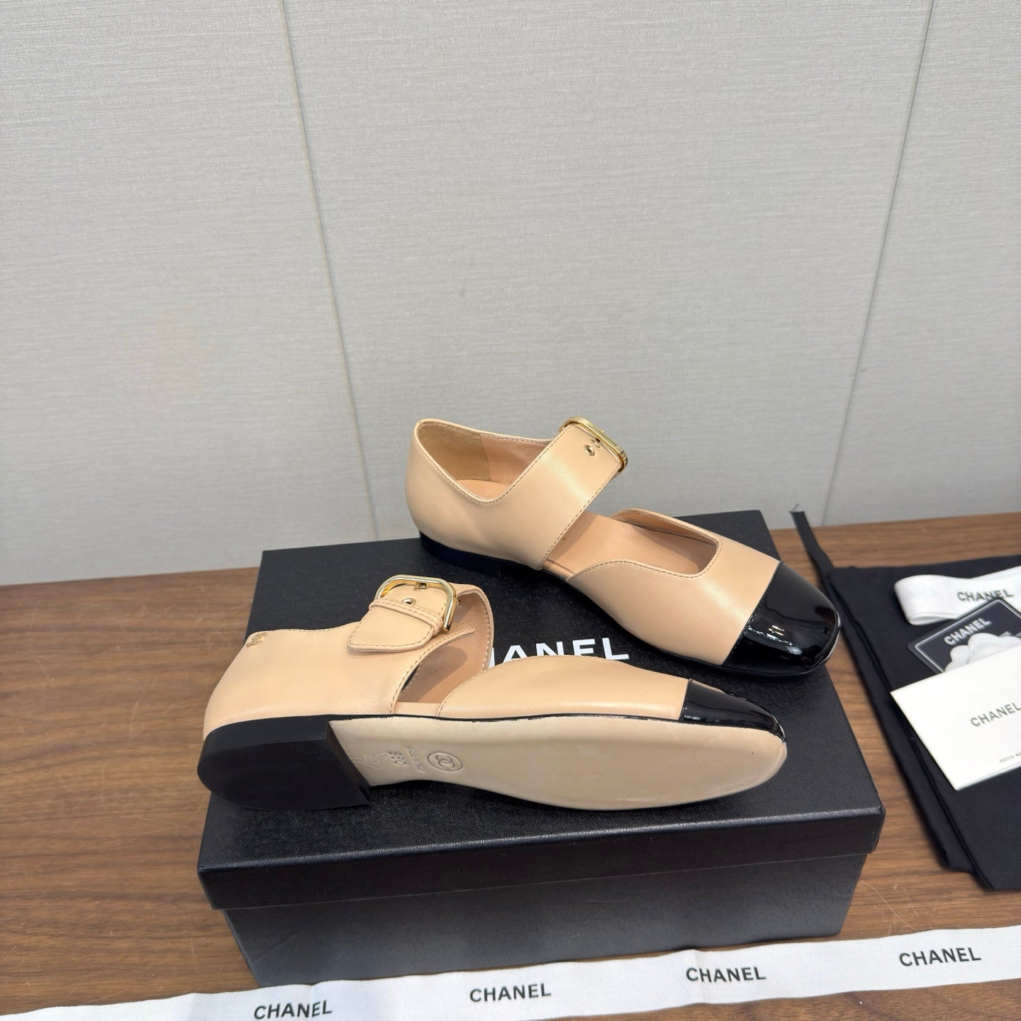 CC 26s Marry Jane Flat 2.5cm Beige Black Cowhide 632183