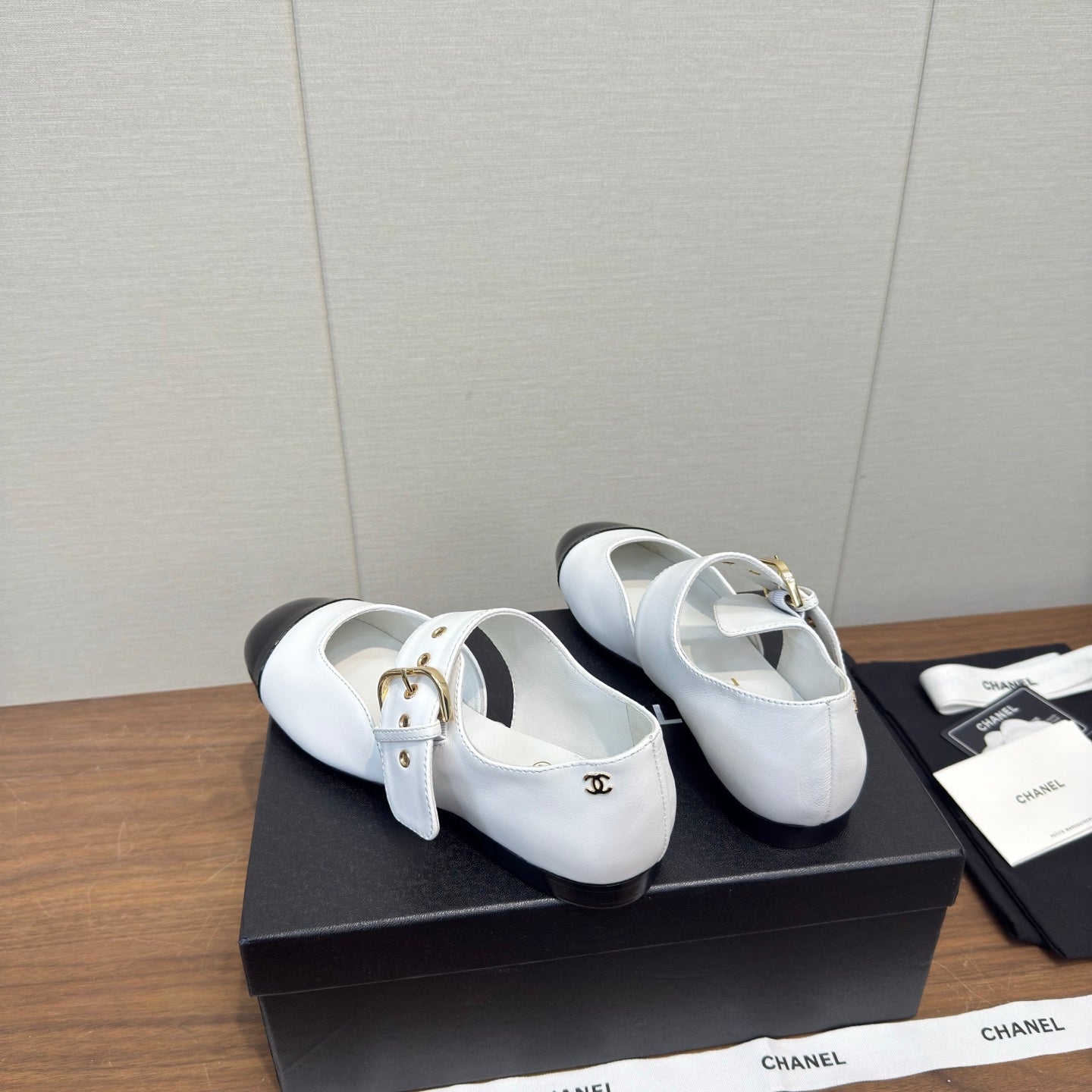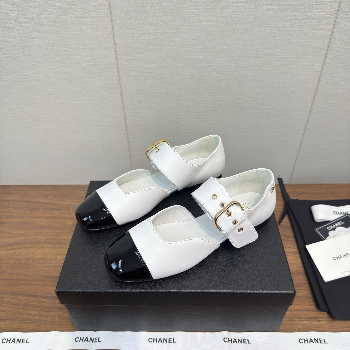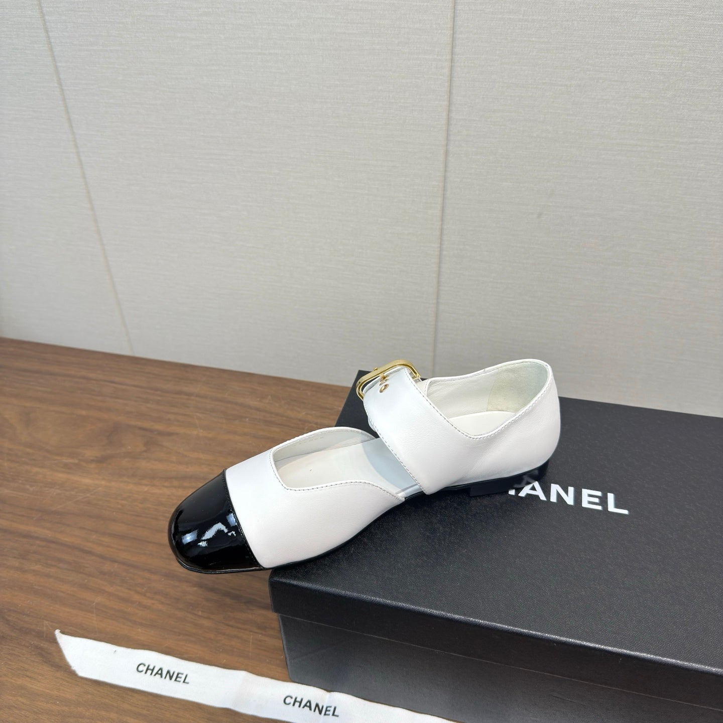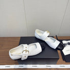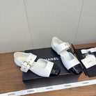 CC 26s Marry Jane Flat 2.5cm White Black Cowhide 632182