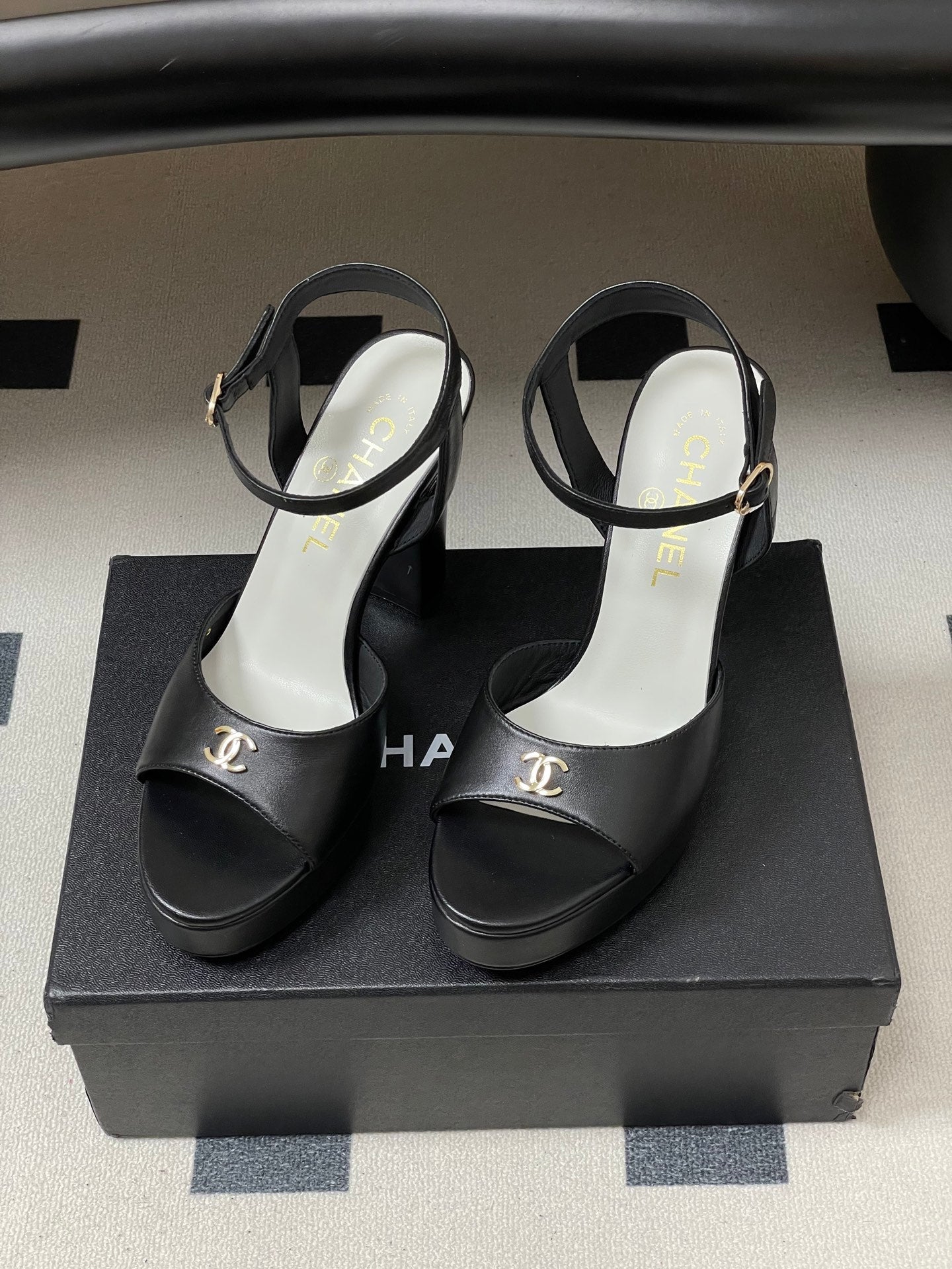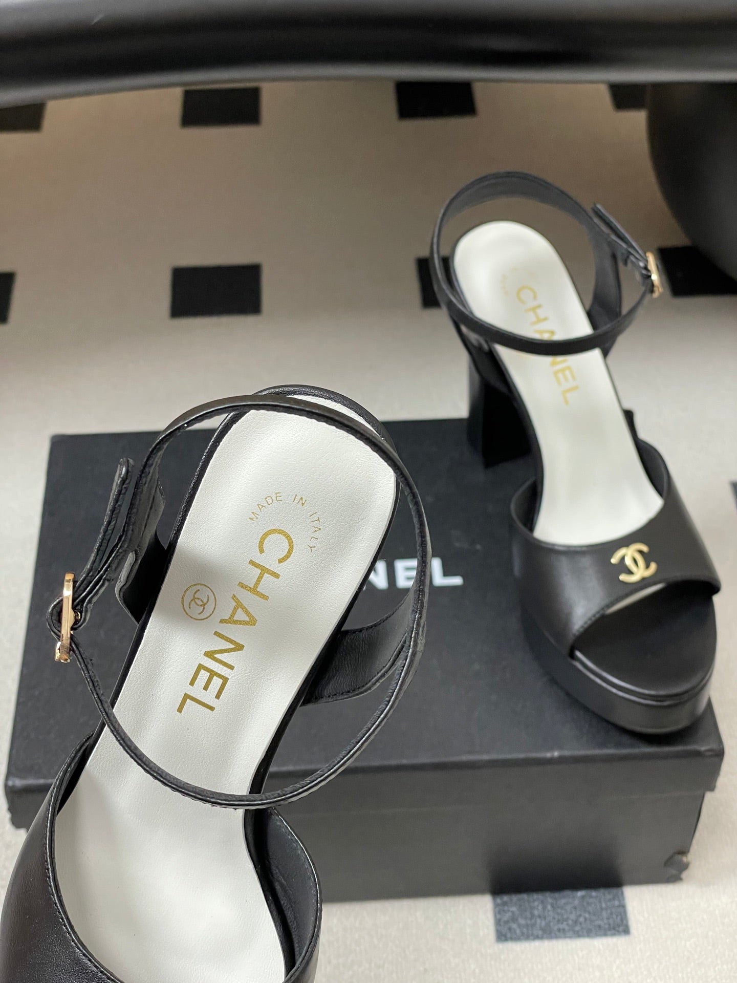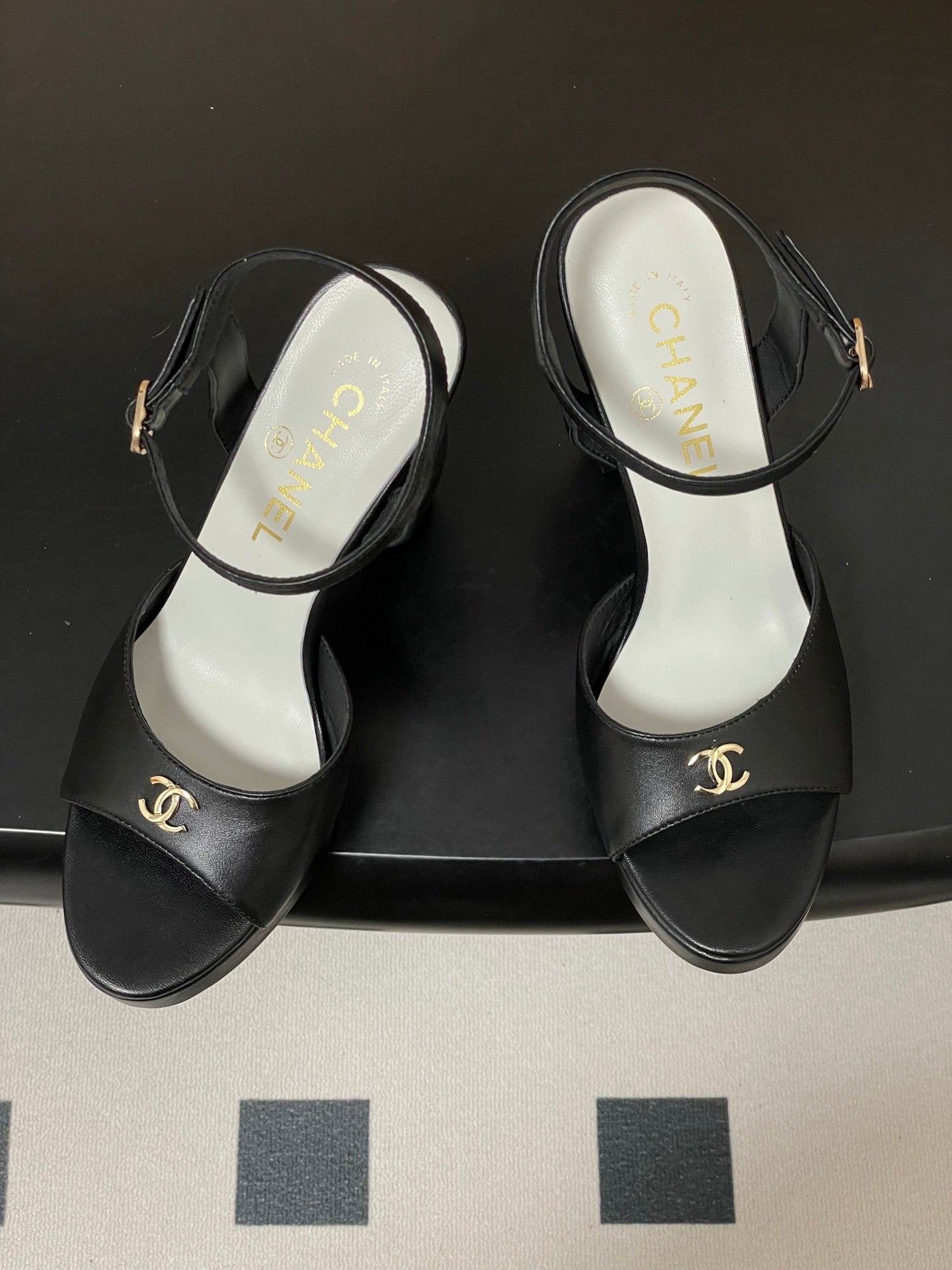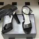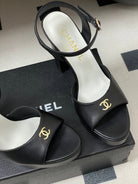 CC 26SS Platform Sandals 120mm Black Double C Sheepskin 632572