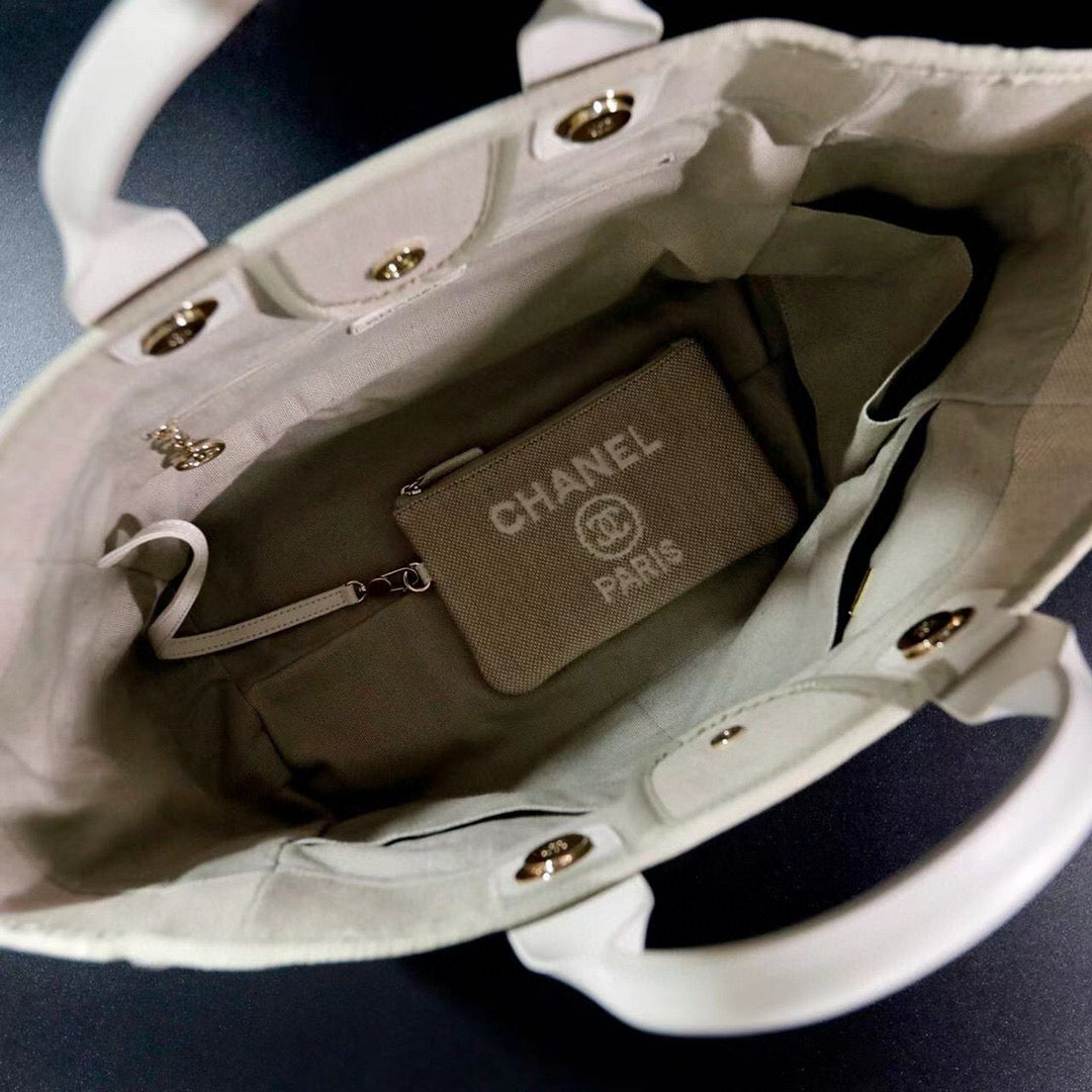 CC DEAUVILLE TOTE BAG 39 IN DARK BEIGE CANVAS