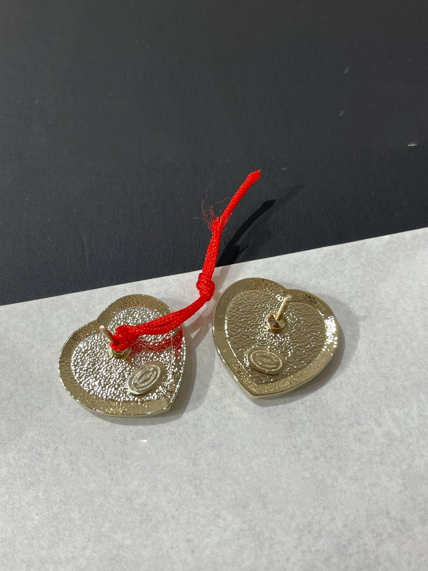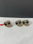 cc diamond paved heart black enamel stud earrings