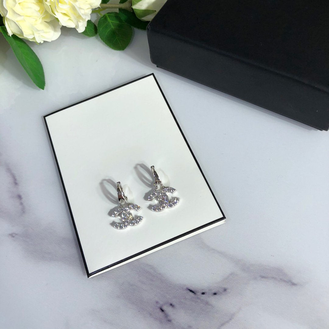 CC SILVER DIAMOND DROP EARRINGS