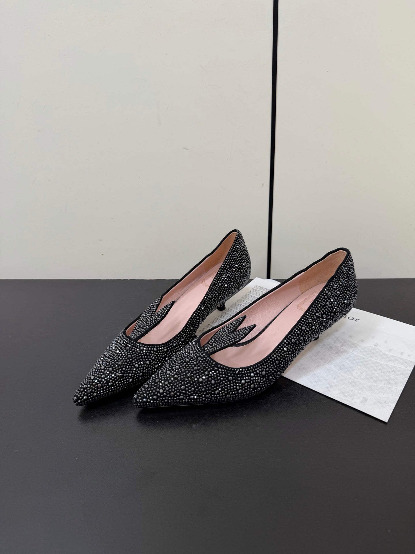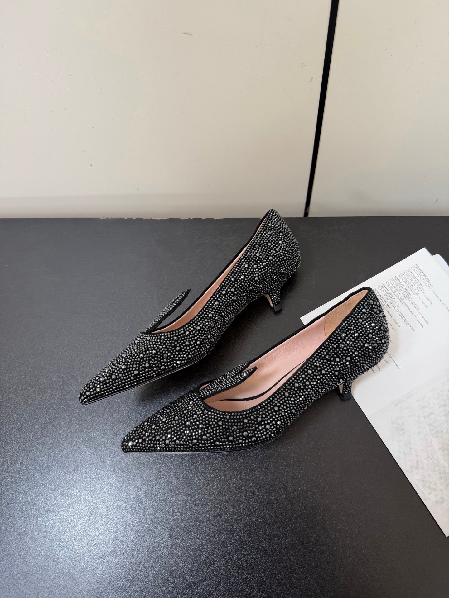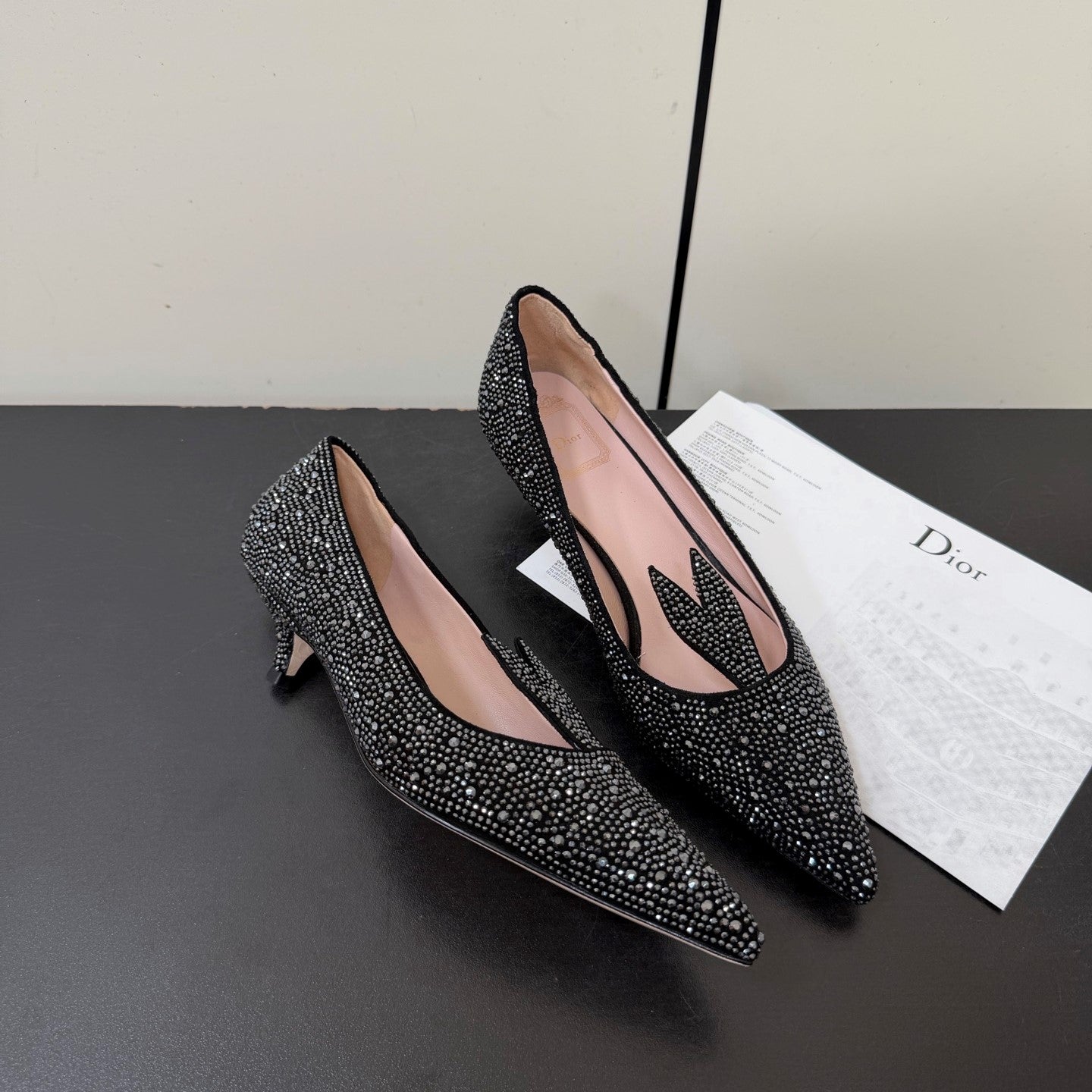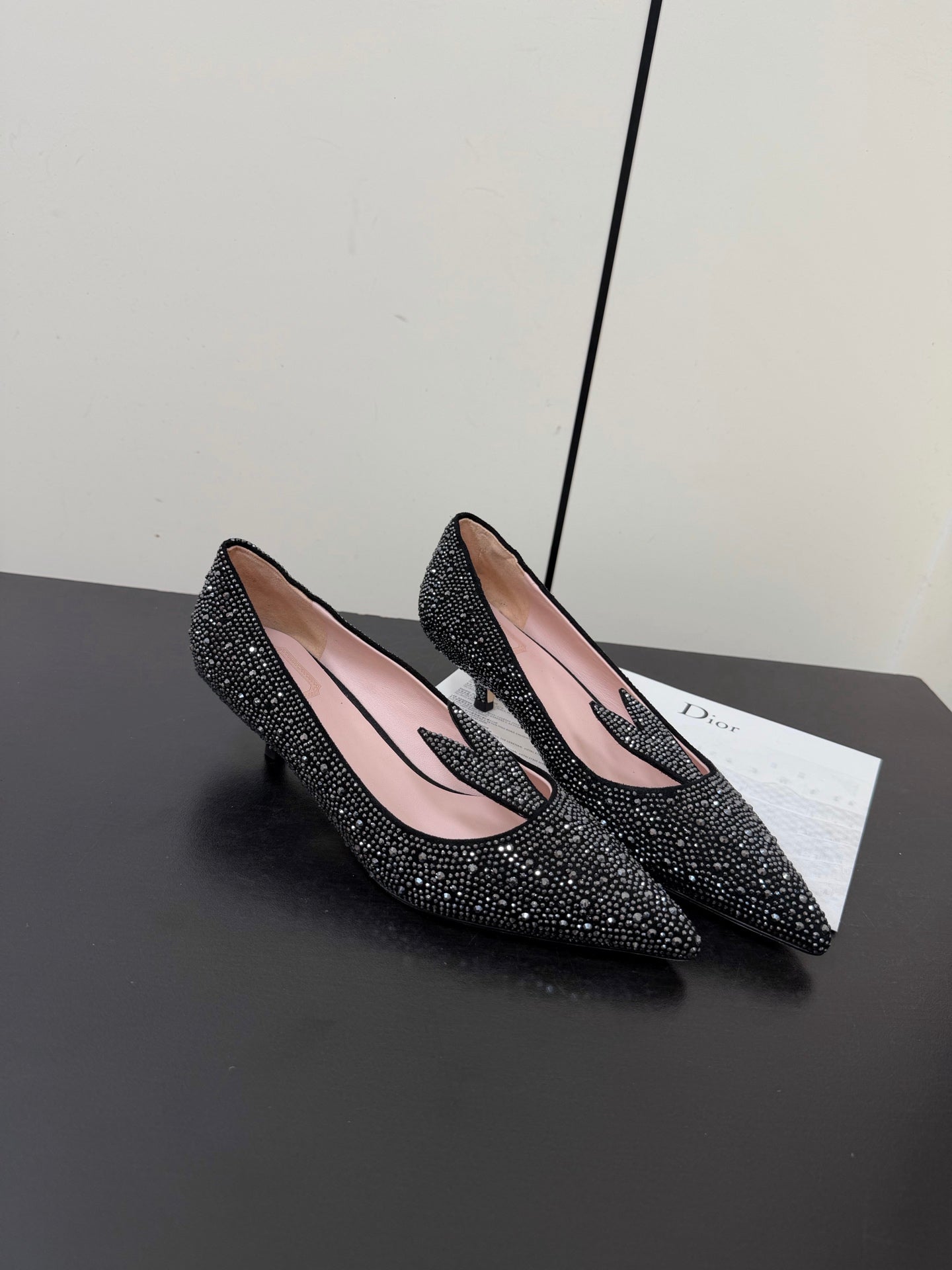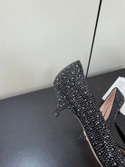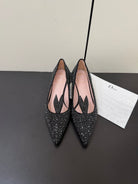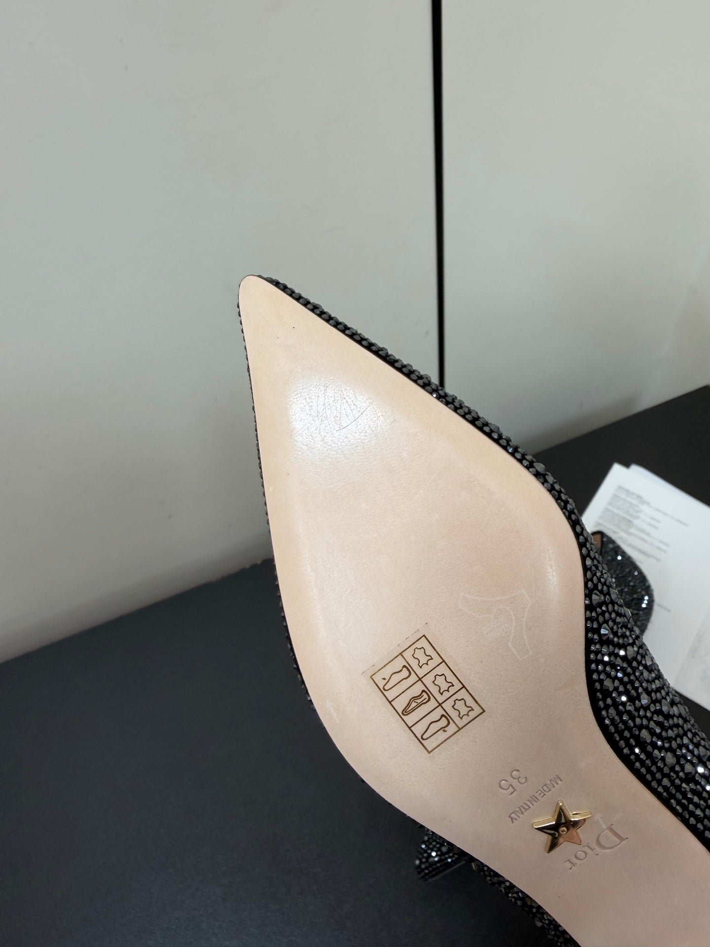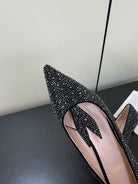 CD Heel Pointed Toe Rhinestone Slingback 3.5 Black Suede 619567