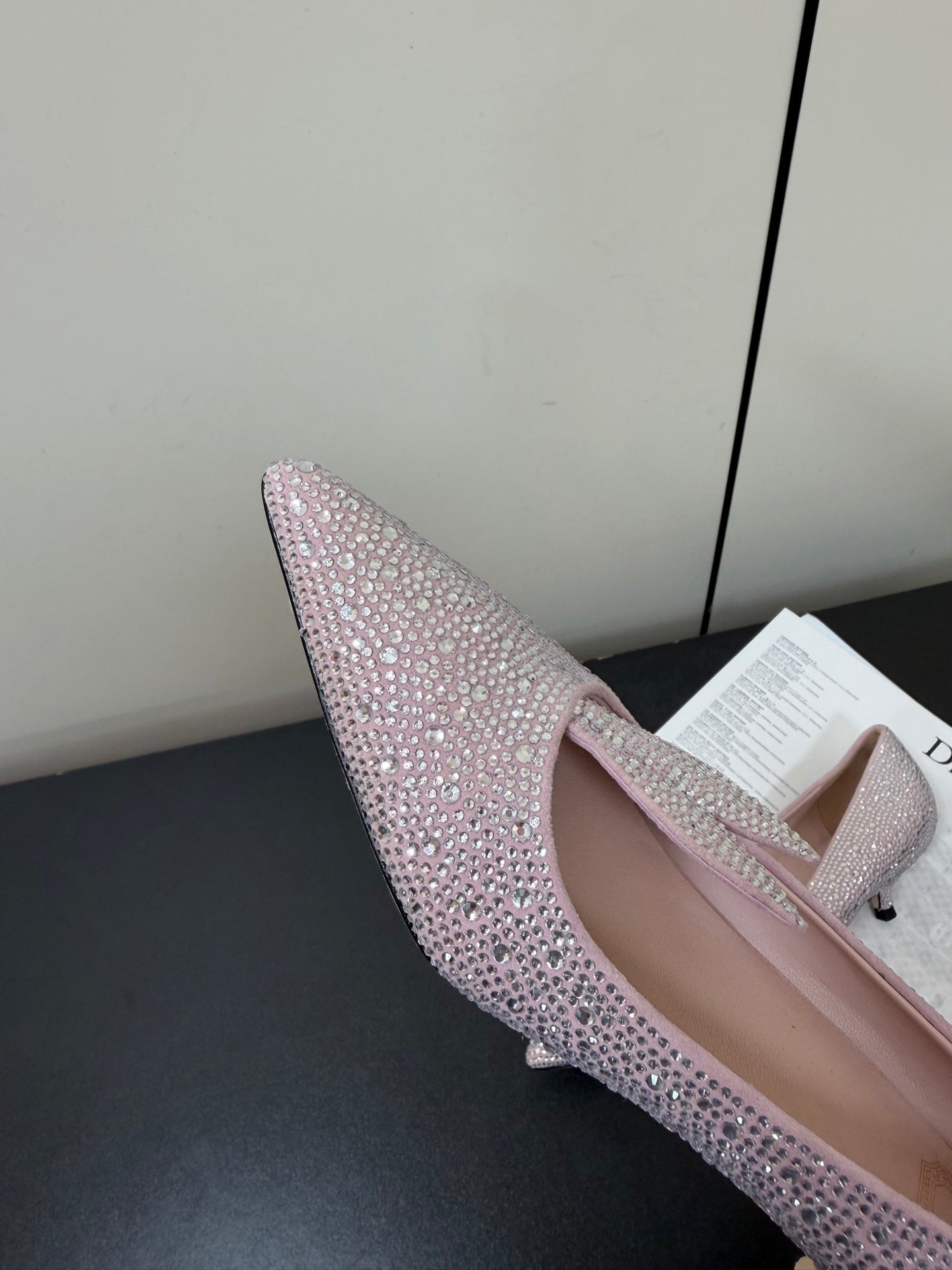 CD Heel Pointed Toe Rhinestone Slingback 3.5 Pink Suede 619565