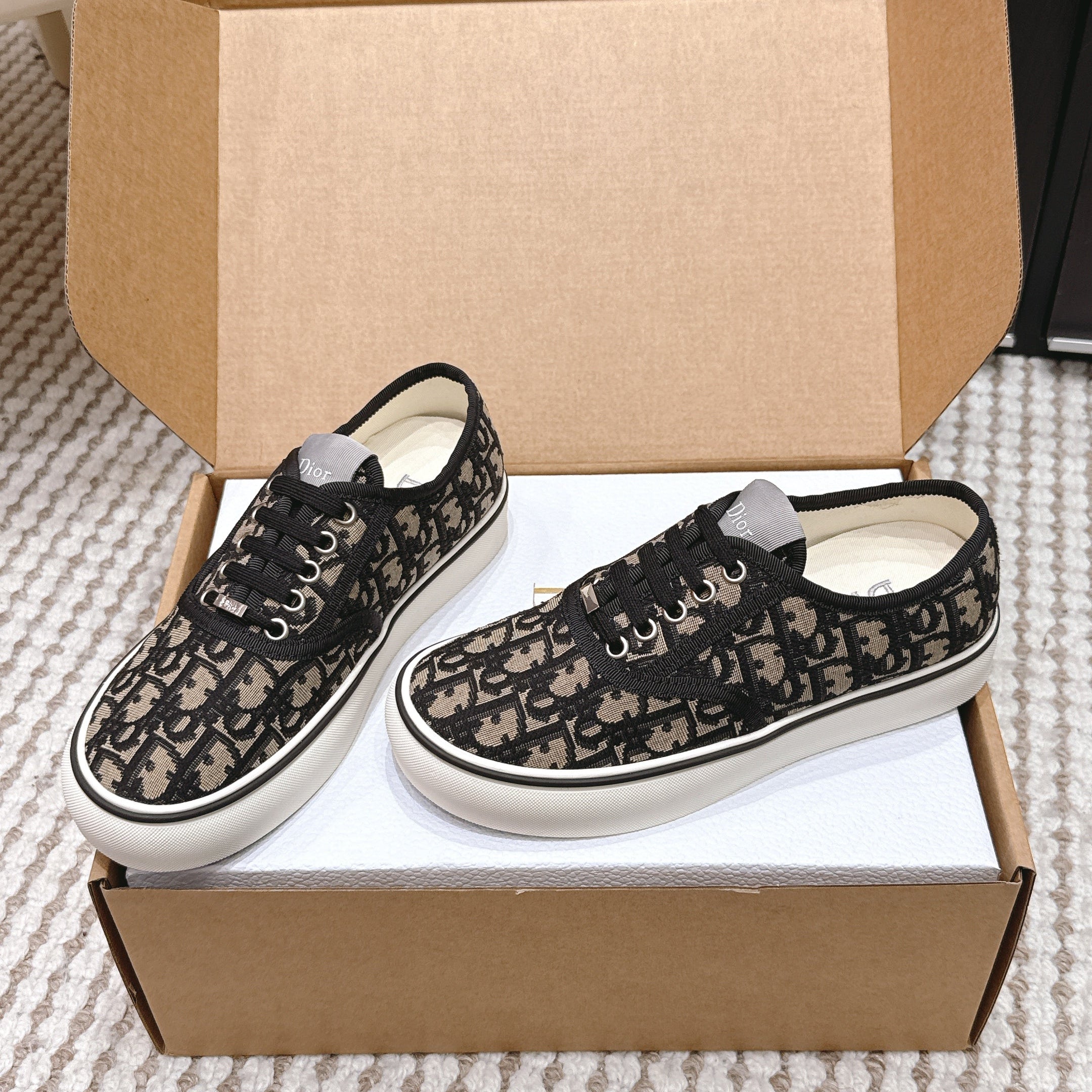 CD Saltwind Sneaker Black Beige Oblique Jacquard Cotton 632436