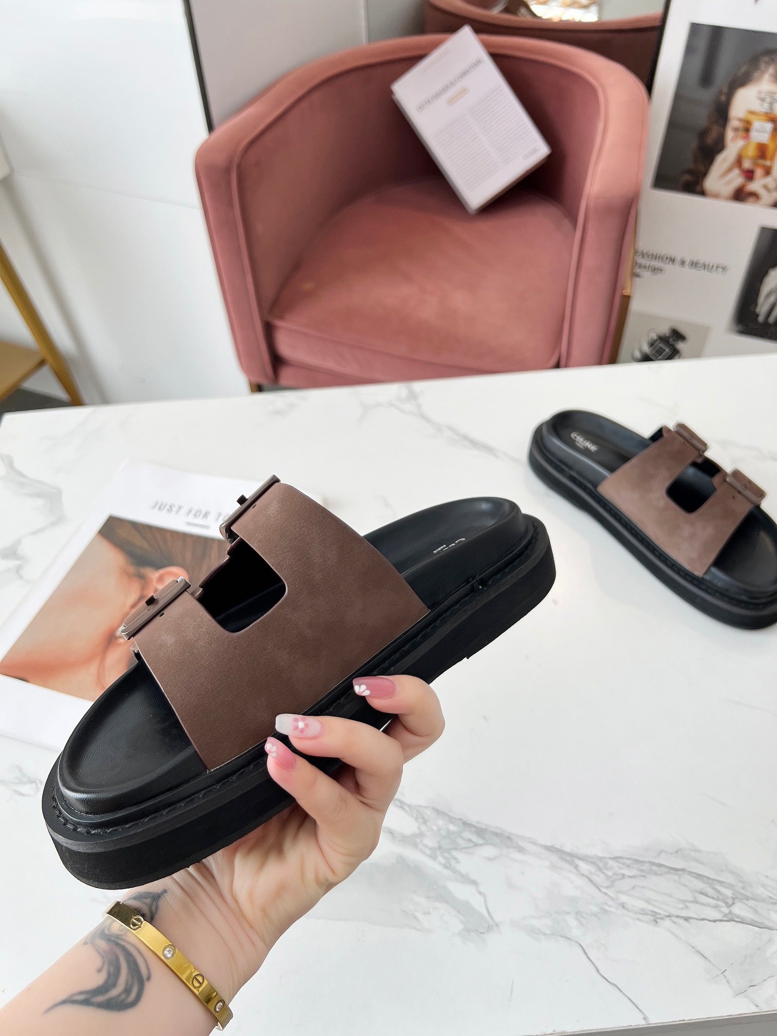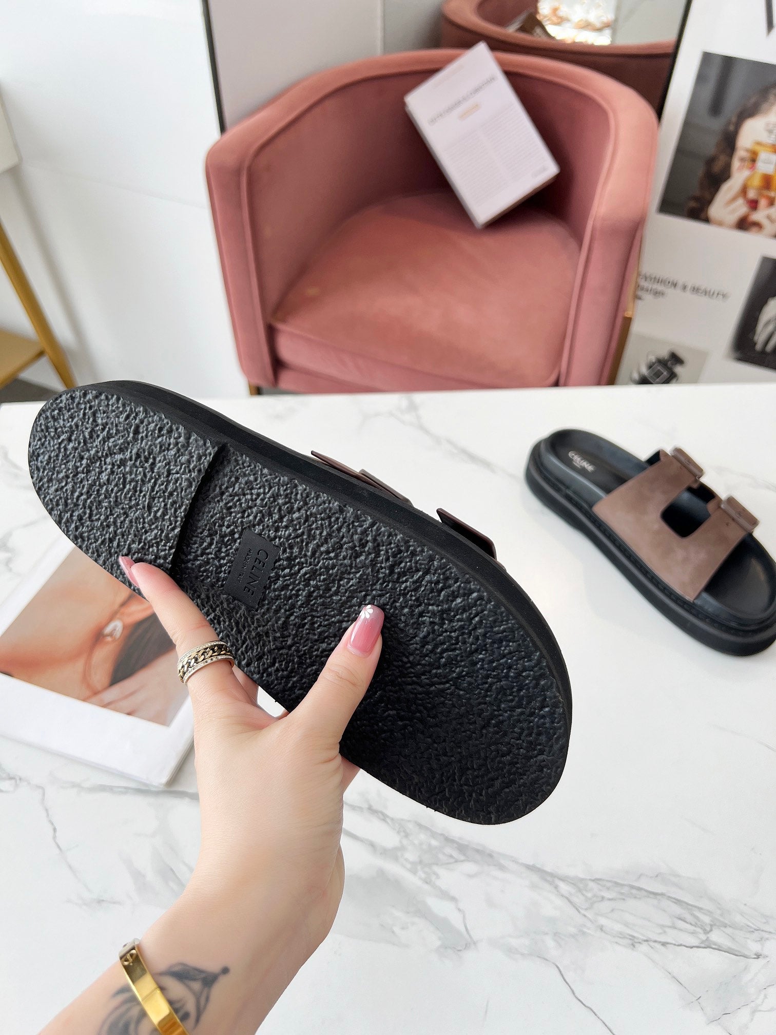 Celine 25C Dad Sandal Mule Ivory Brown Leather 238144