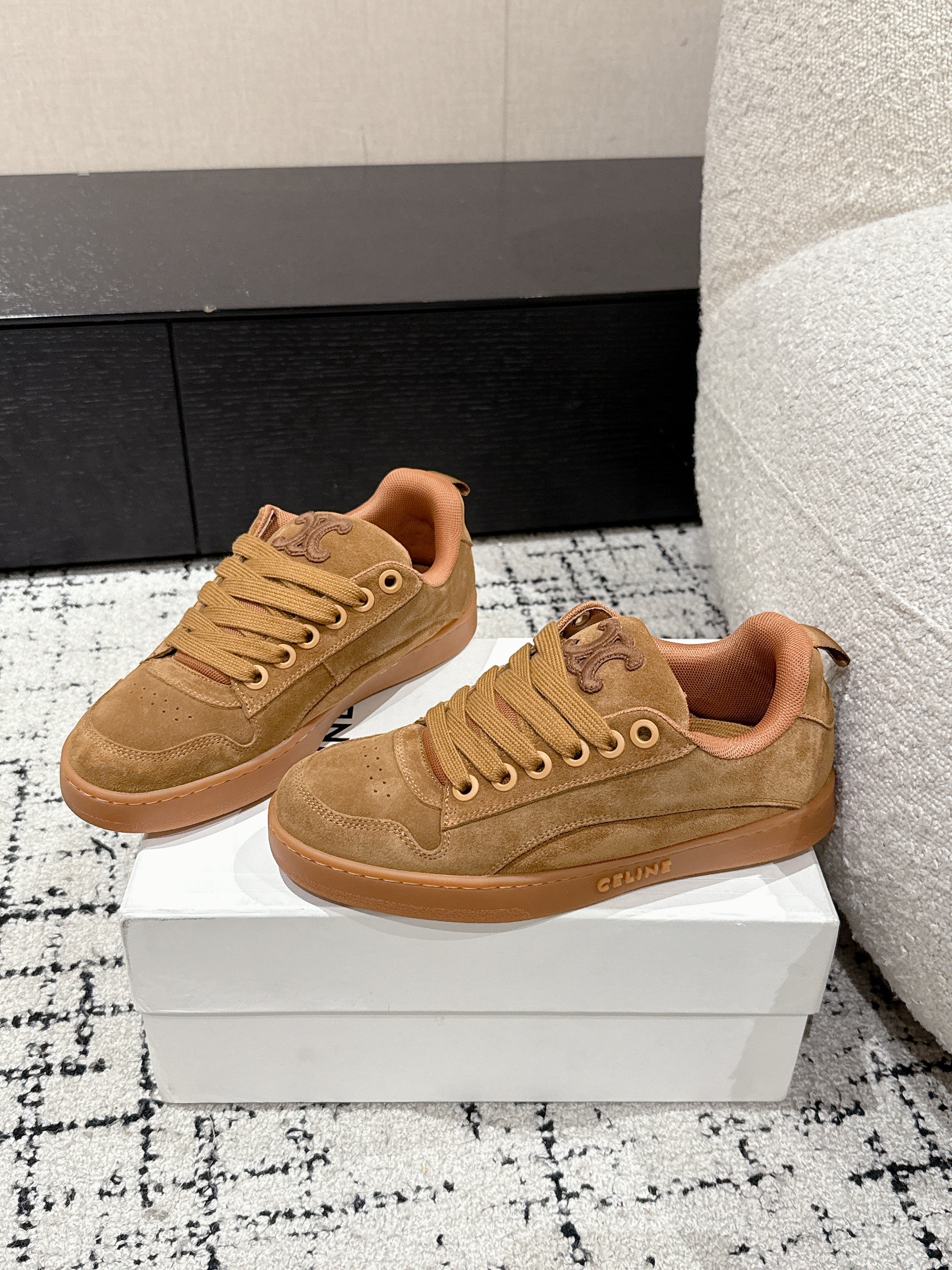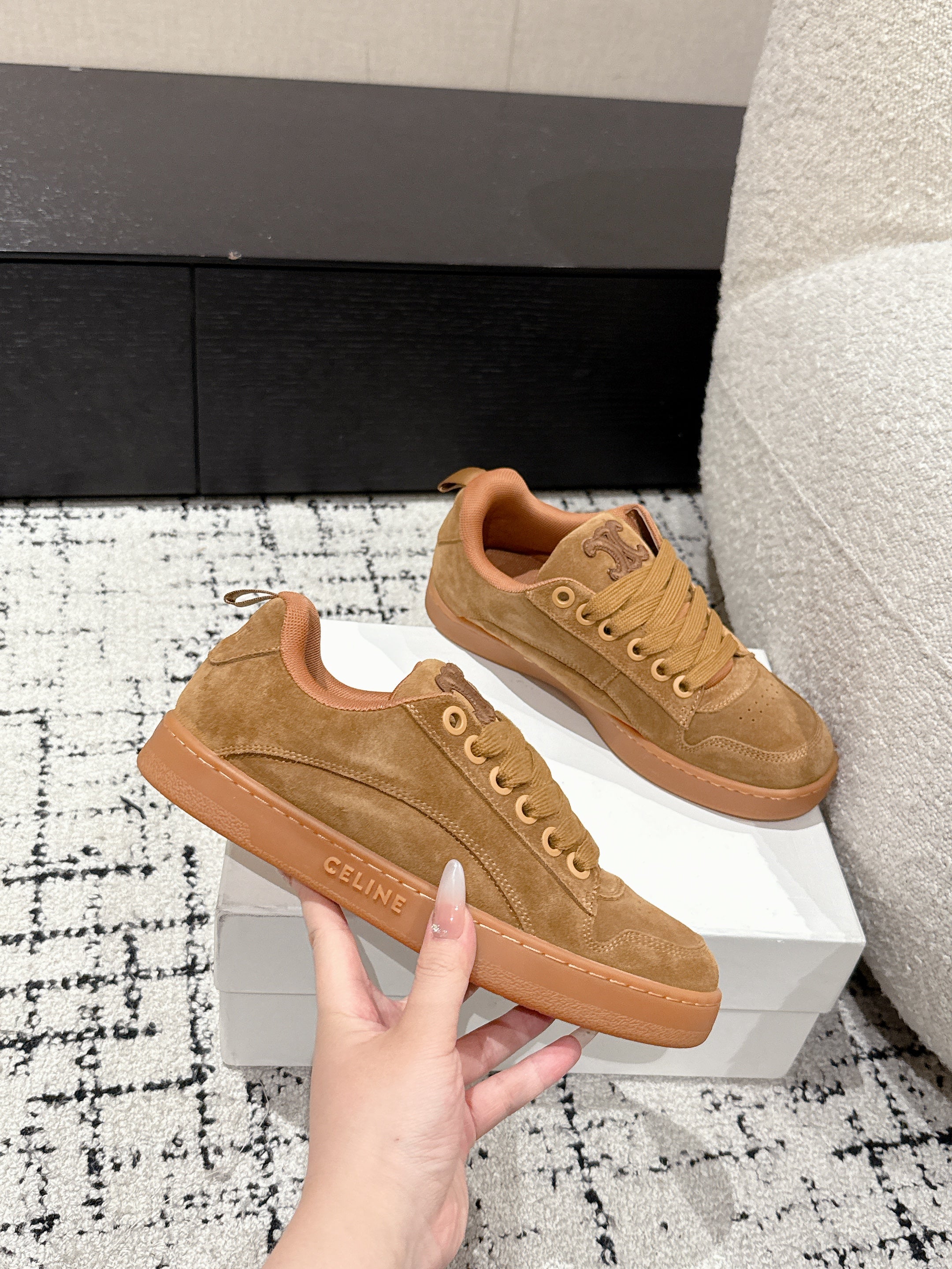 CELINE 25C Huntington Low Top Sneaker Copper Brown Suede 232345