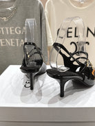 Celine 25C Judy Double Strap Mary Jane Slingback Black Sheepskin 236778