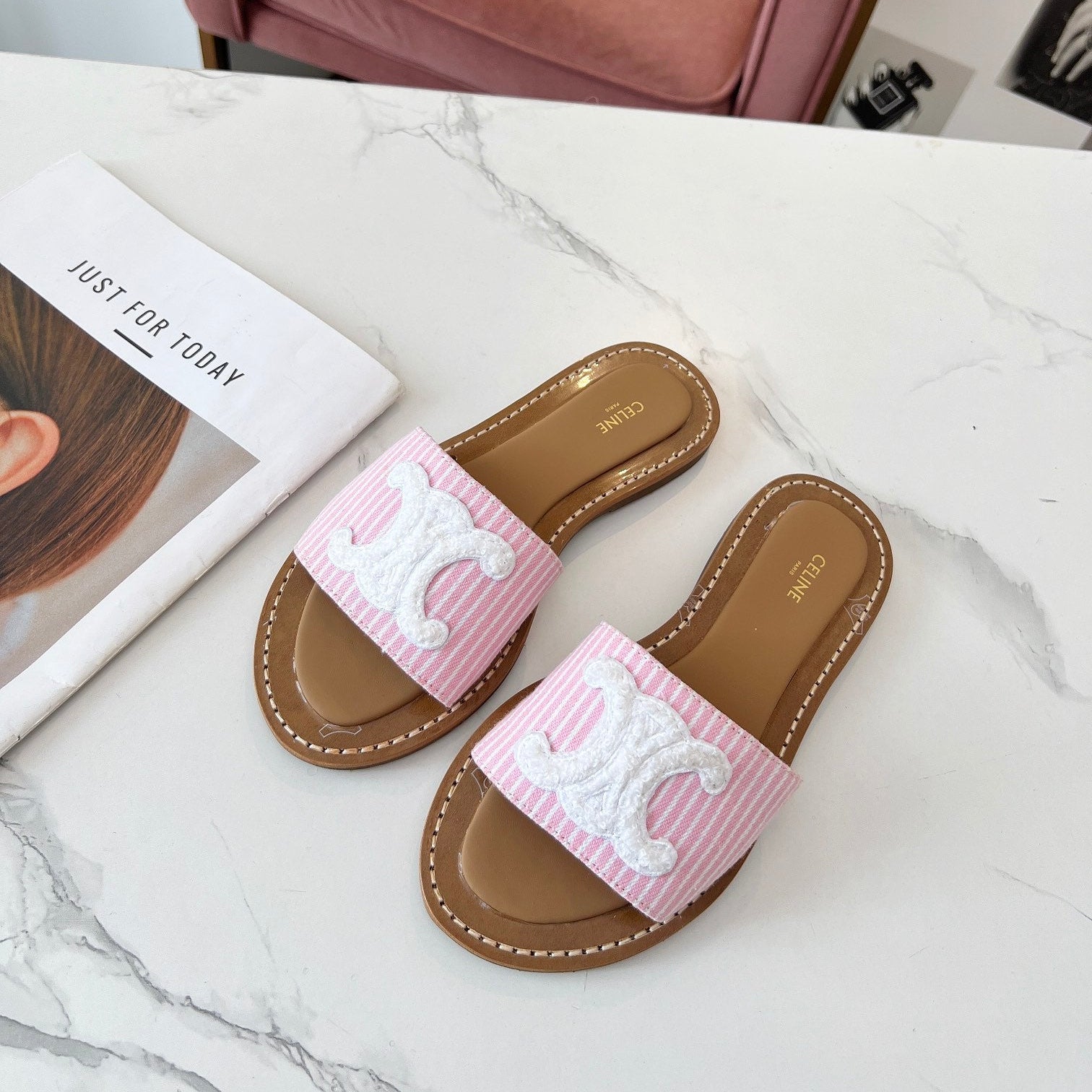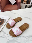 Celine 25C Slippers Pink mix White Fabric with Calfskin 238164