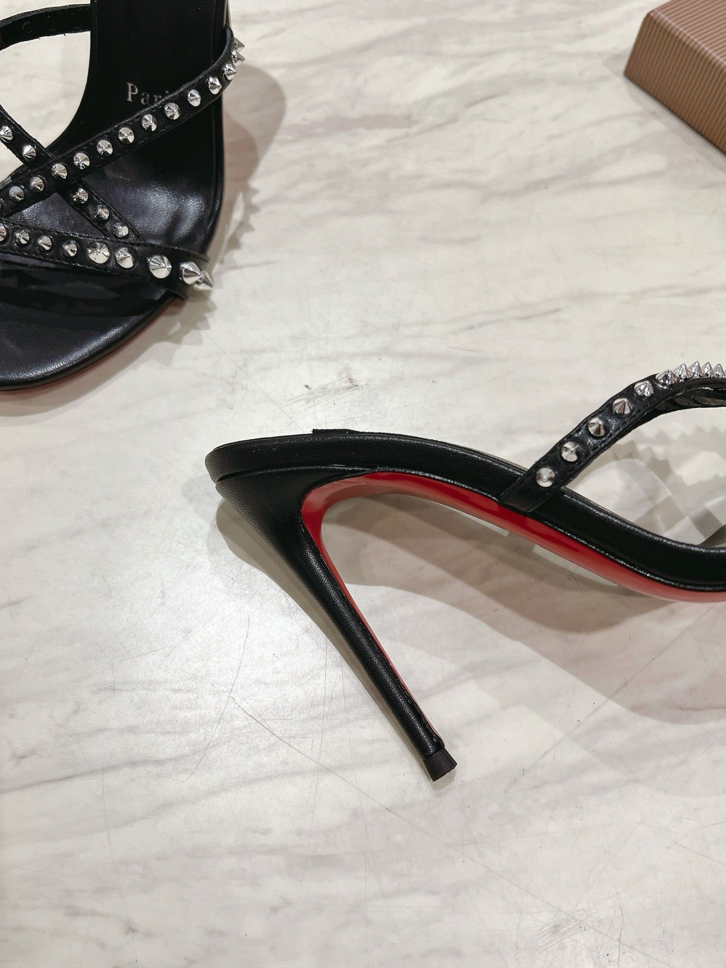 - Material: Gloss Calf Patent Leather, Rivets