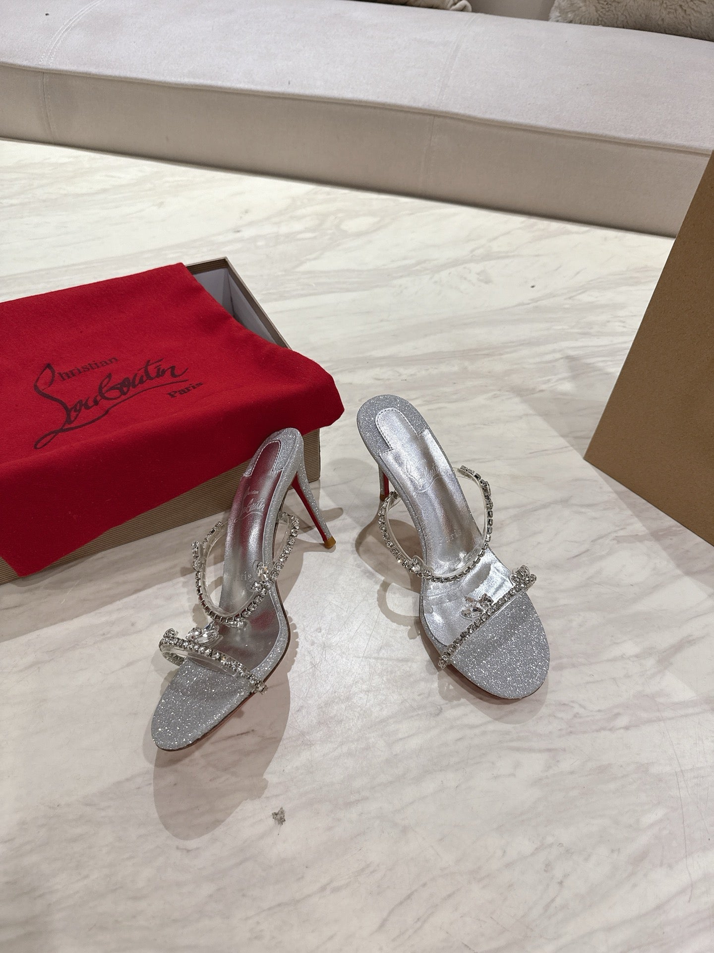 CL 25 Sandals Silver PVC Creo Rhinestones 307509