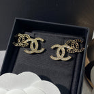 DOUBLE STUD DOUBLE C DIAMOND GOLD EARRINGS