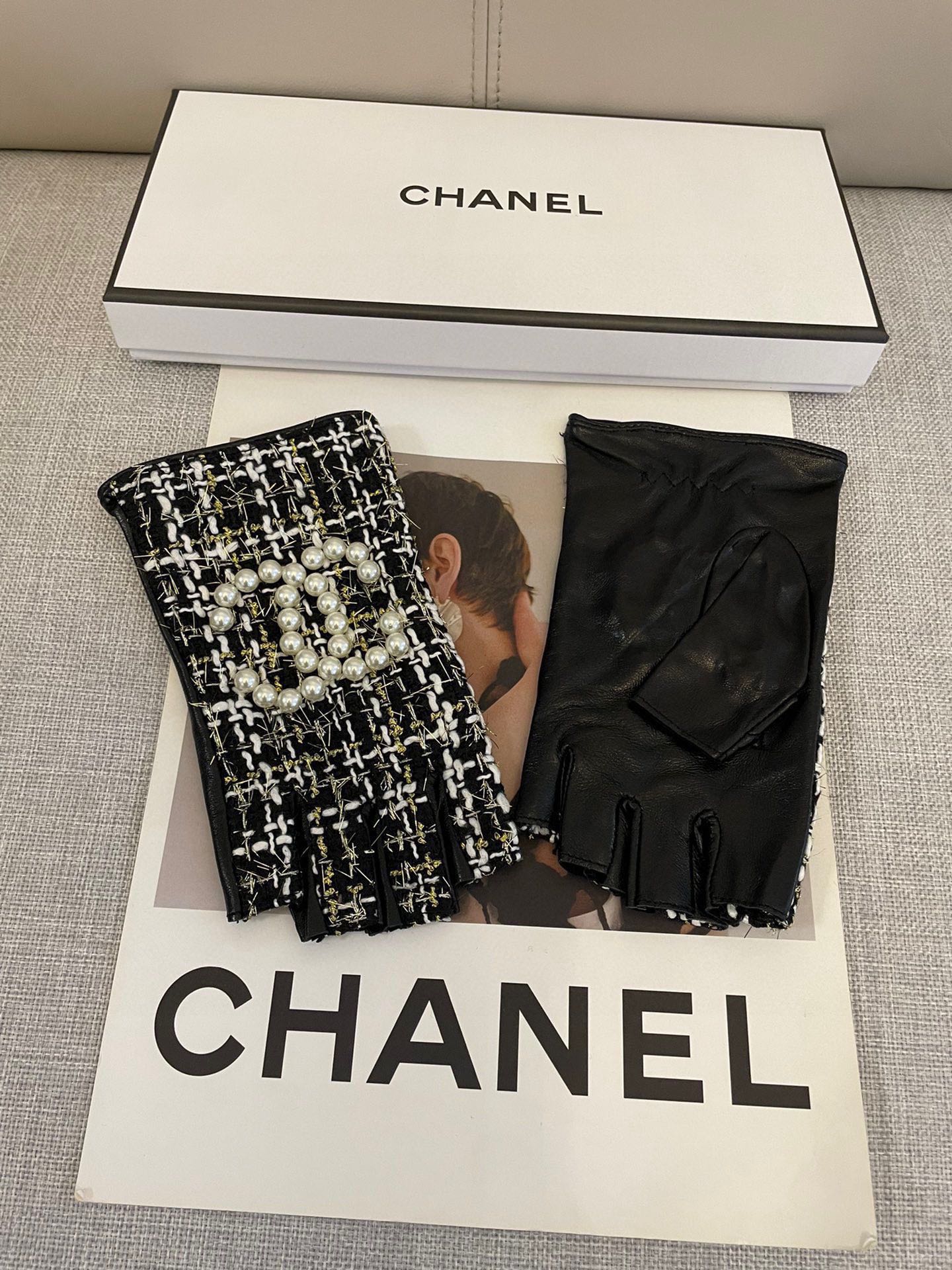 FINGERLESS GLOVES IN BLACK MIX WHITE WOOL TWEED 463847