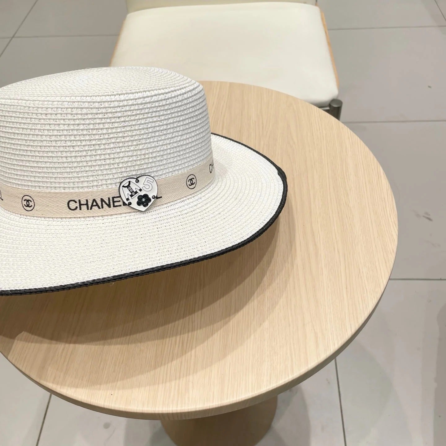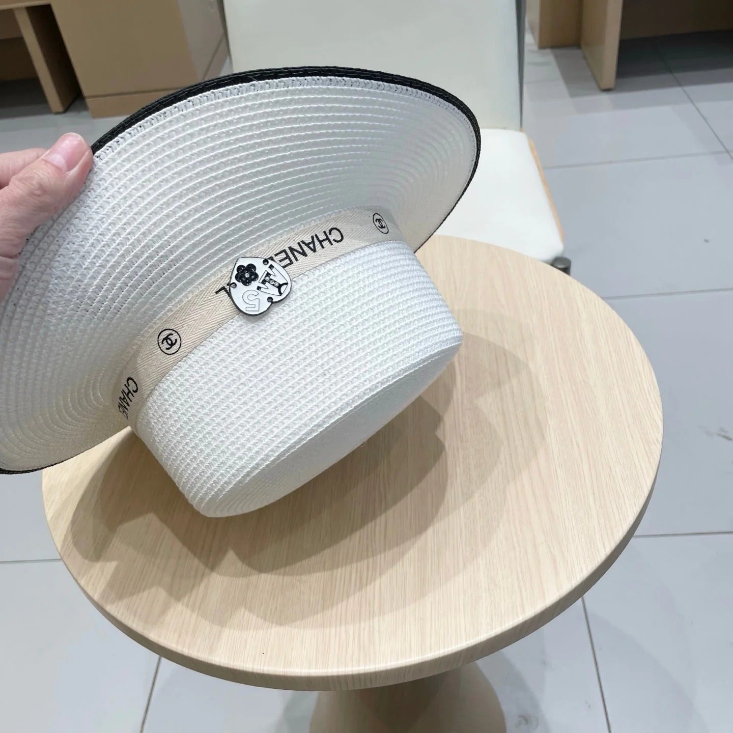 FLAT STRAW HAT WHITE 672721