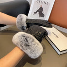 GLOVES IN BLACK EMBOSSED LAMBSKIN WITH RABBIT FUR 462323