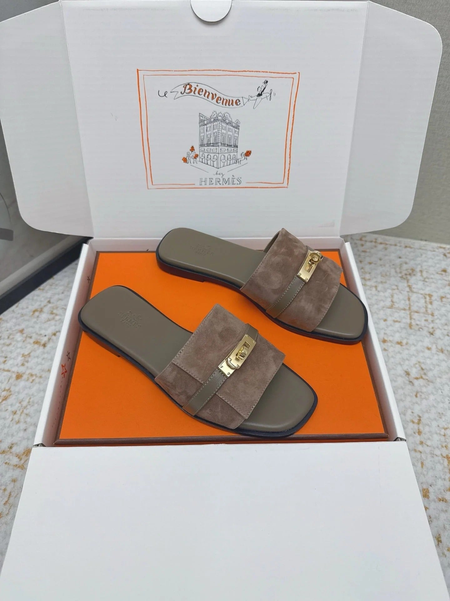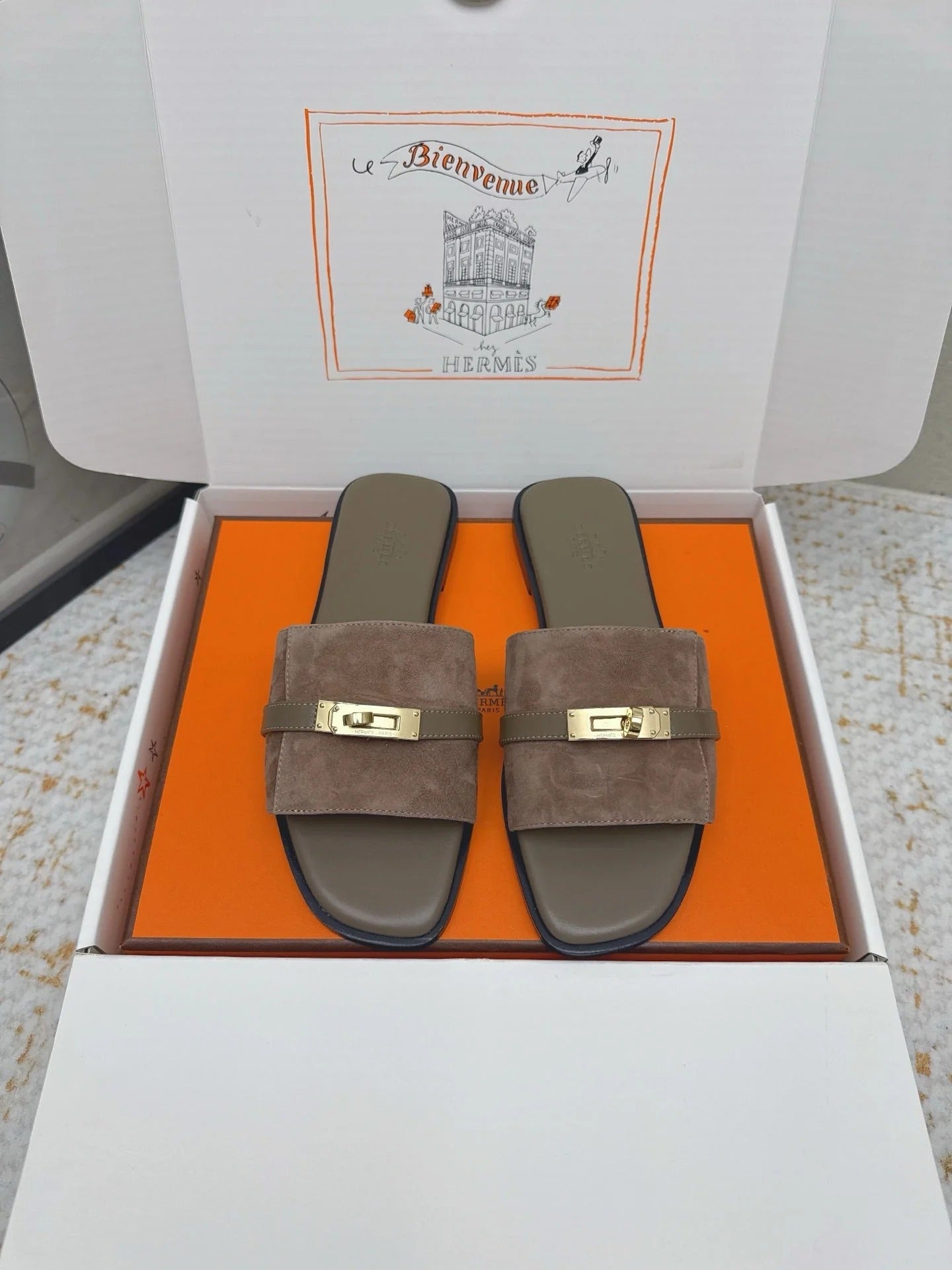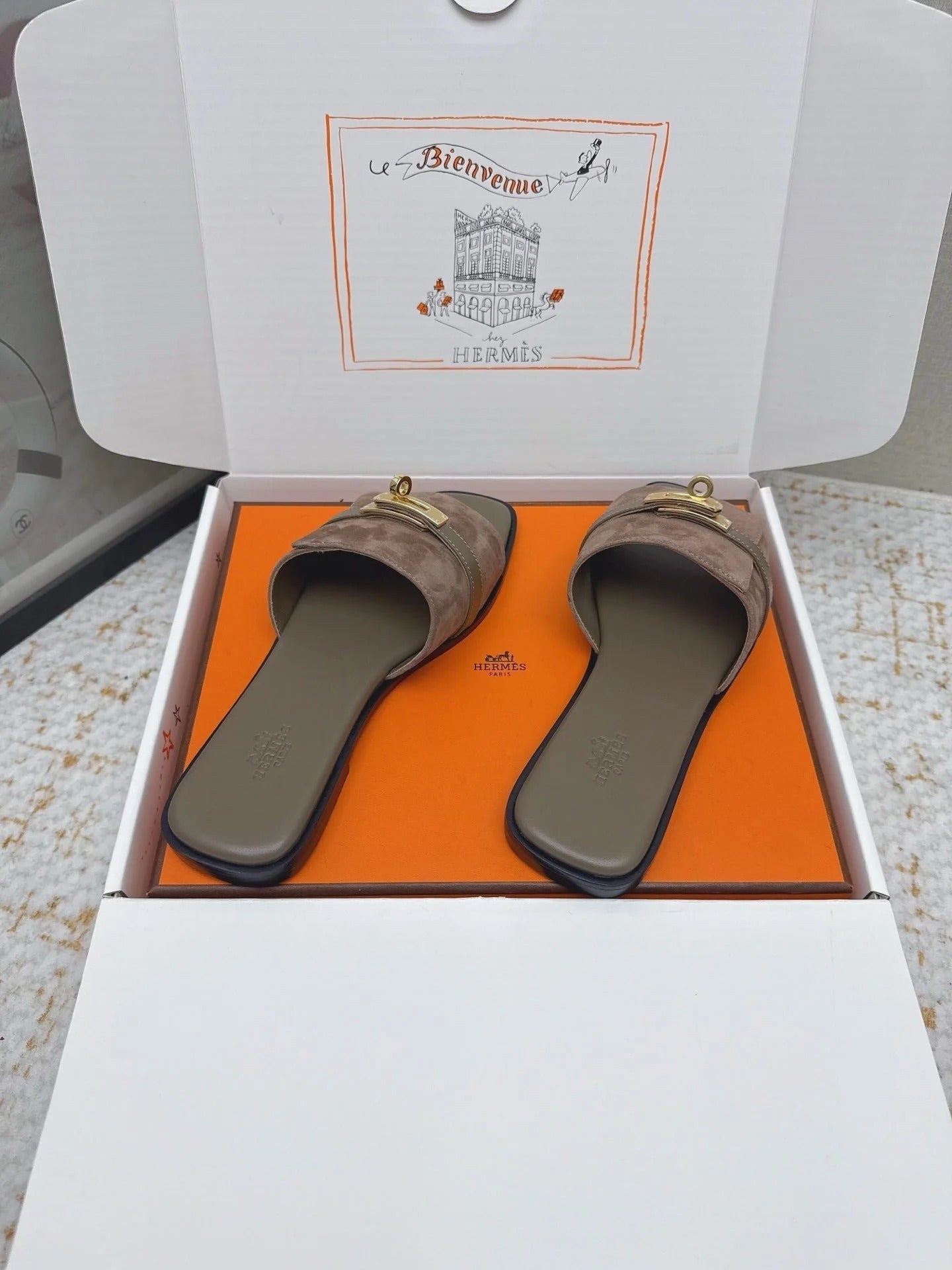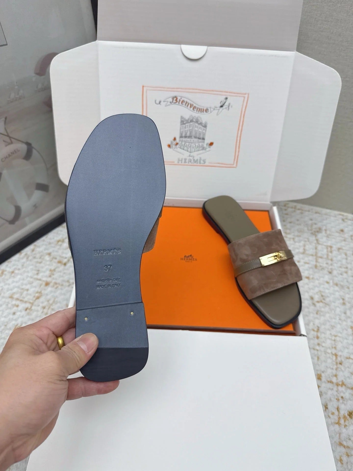 HM 26ss Oasis Sandals Brown Suede Cowhide 625146
