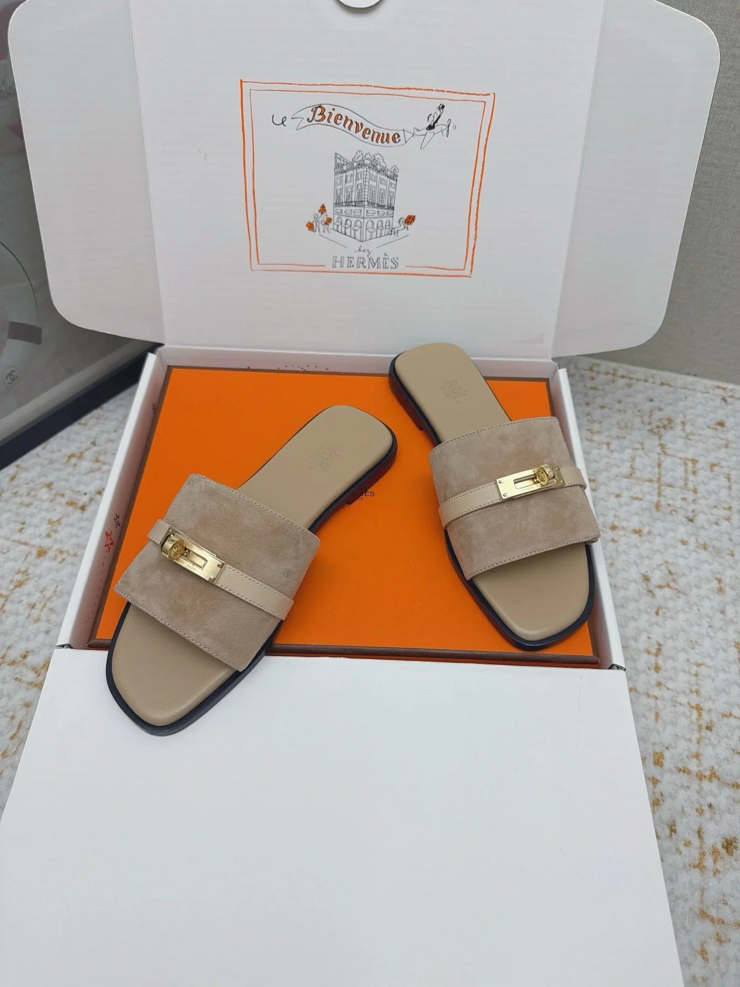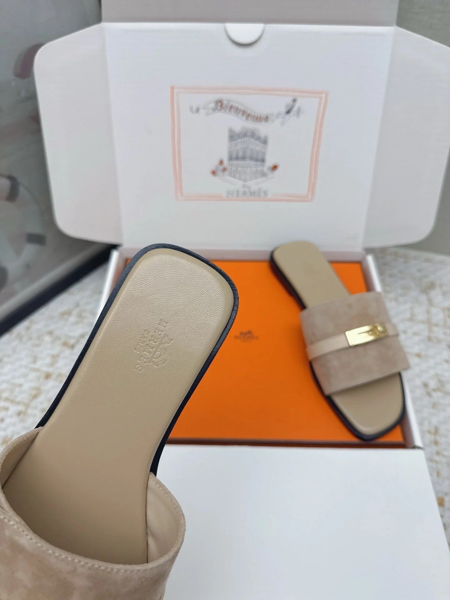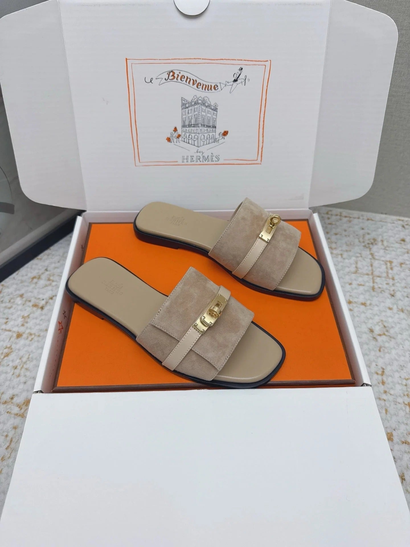 HM 26ss Oasis Sandals Taupe Suede Cowhide 625145