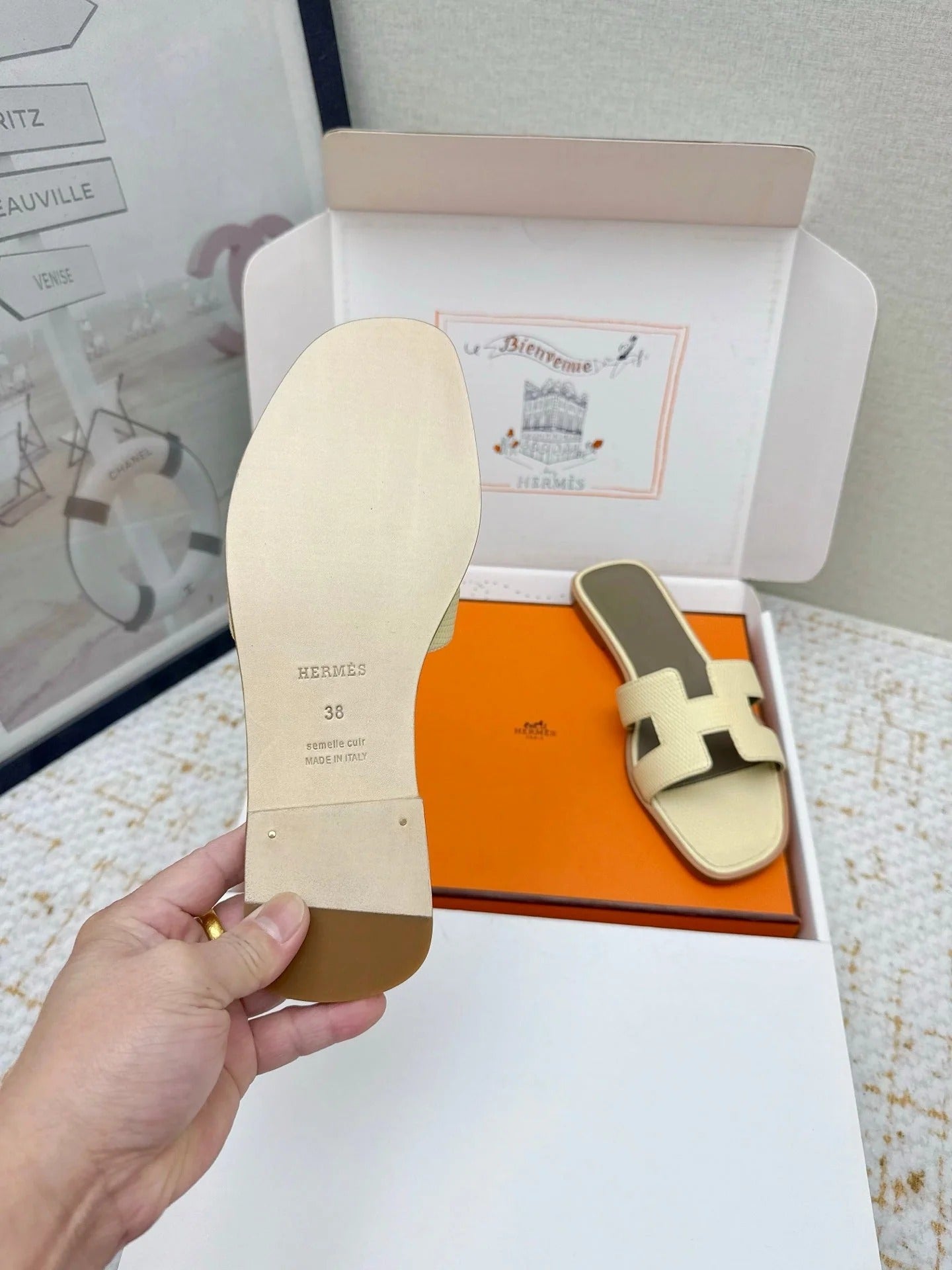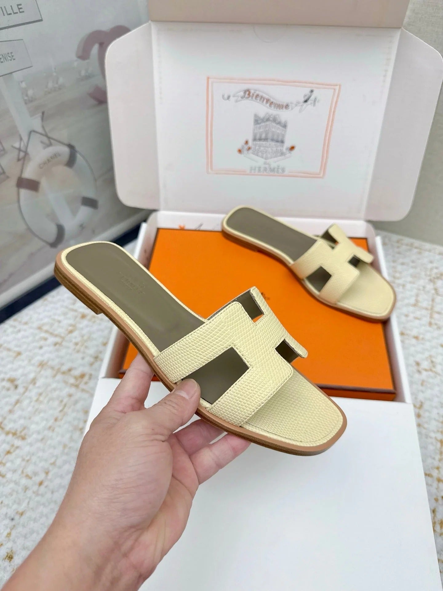 HM 26ss Oran Sandals Cream Yellow Cowhide 625045