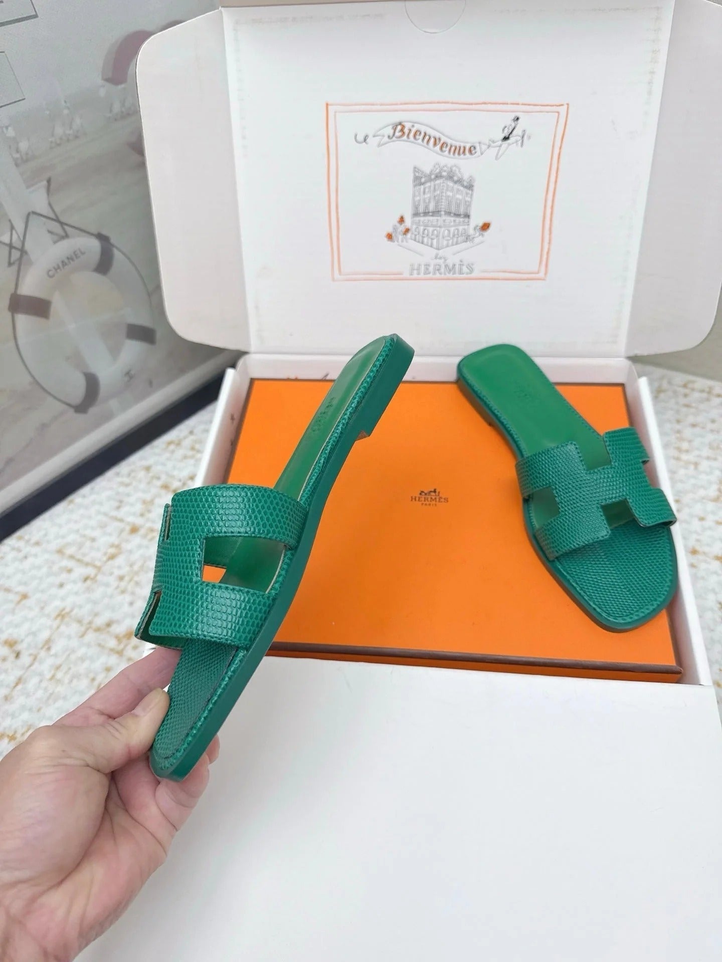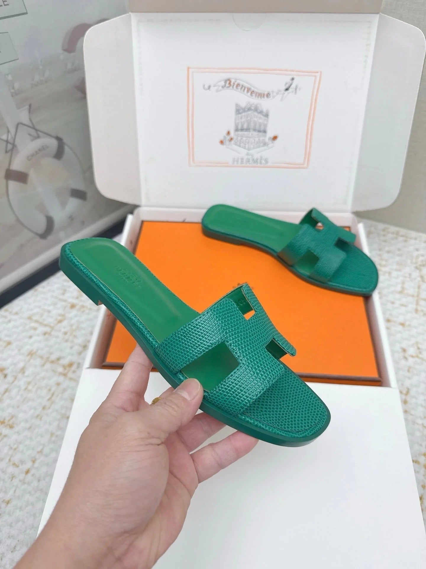HM 26ss Oran Sandals Dark Green Cowhide 625049
