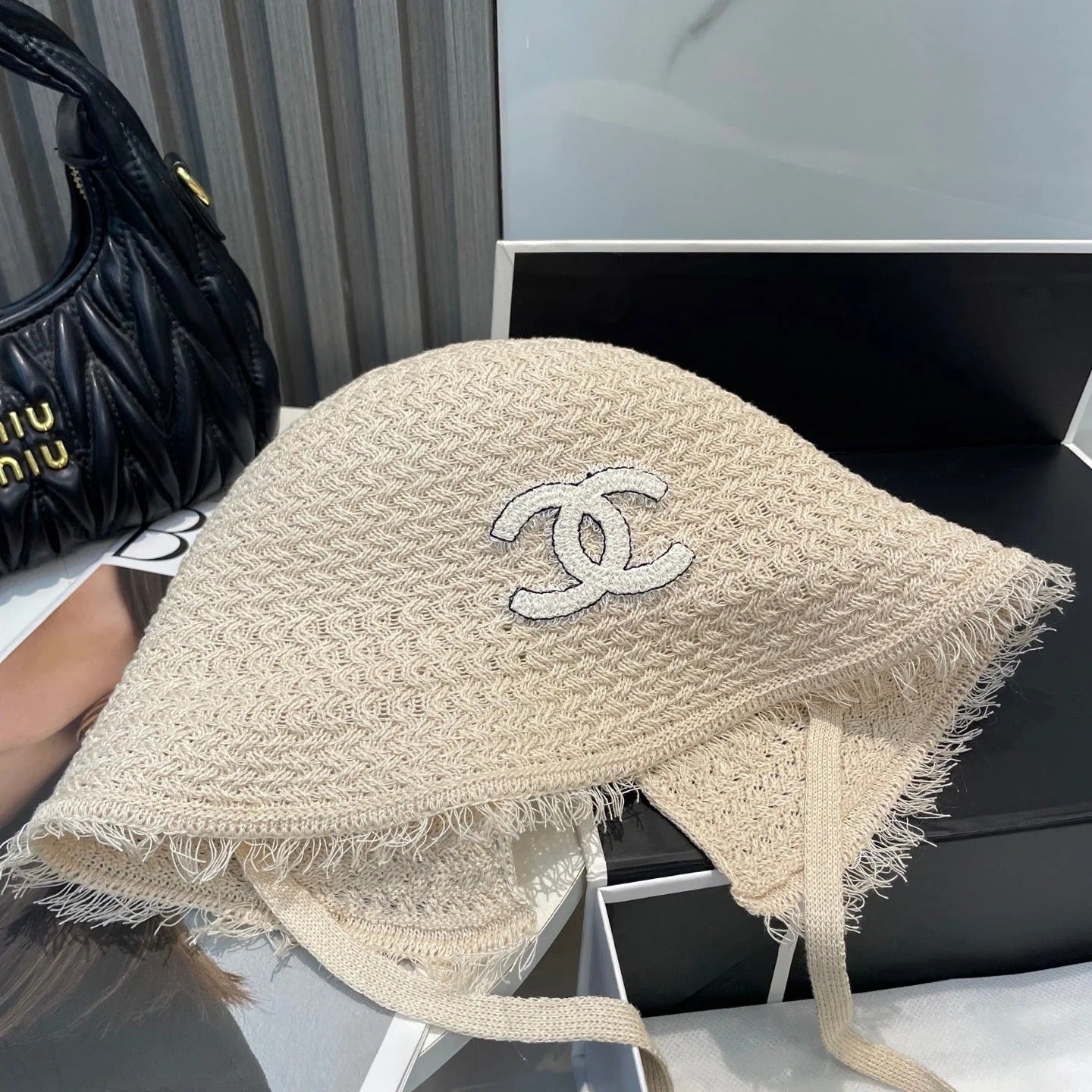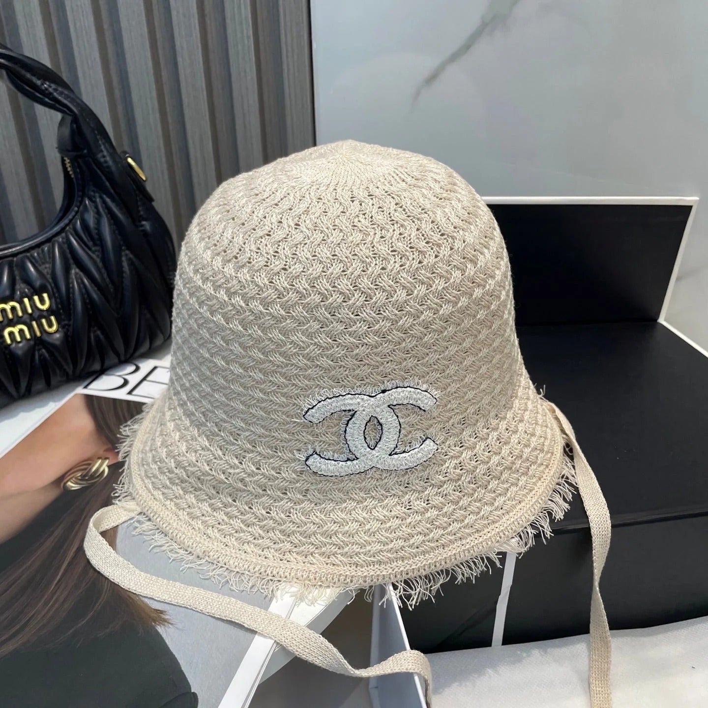KNITTED BUCKET HAT IVORY 673885