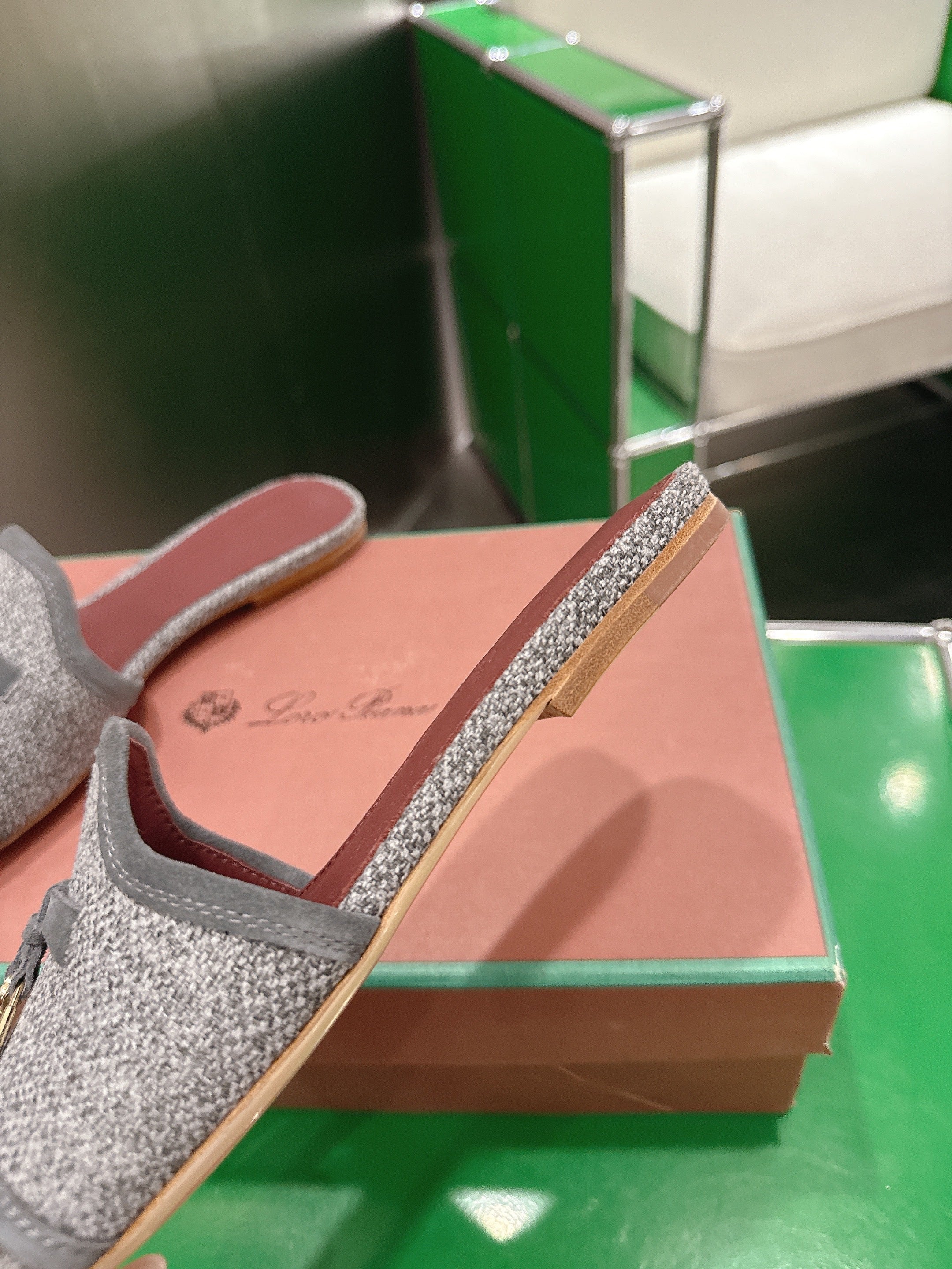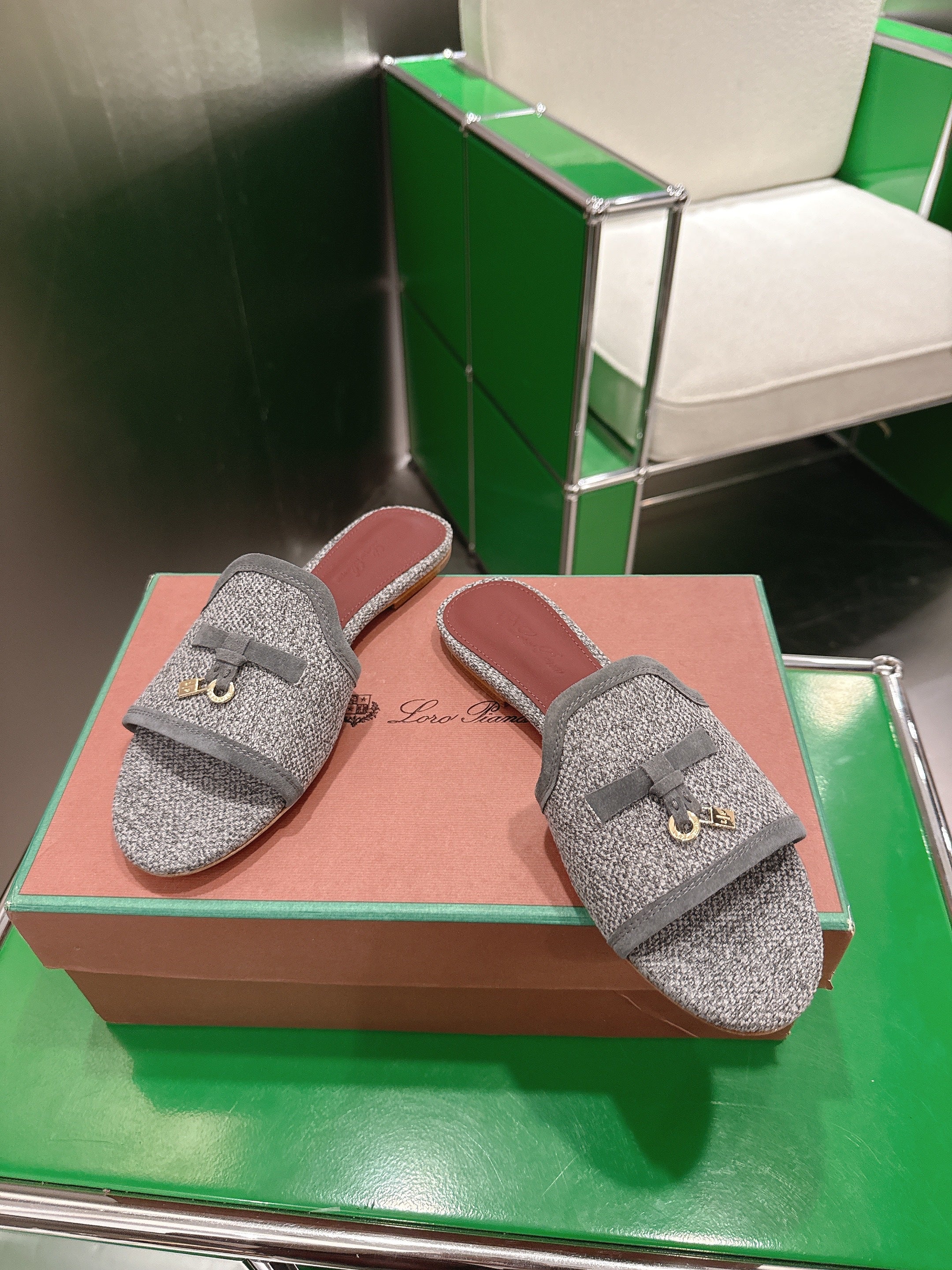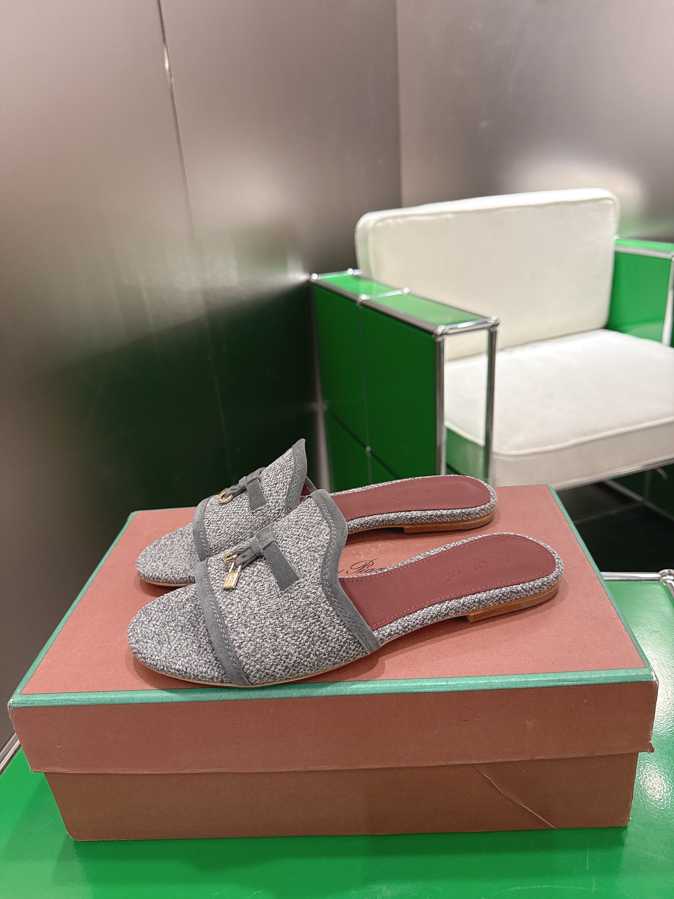 Loro Piana 26 Slippers Gray Wish Sheepskin Fabric 632135