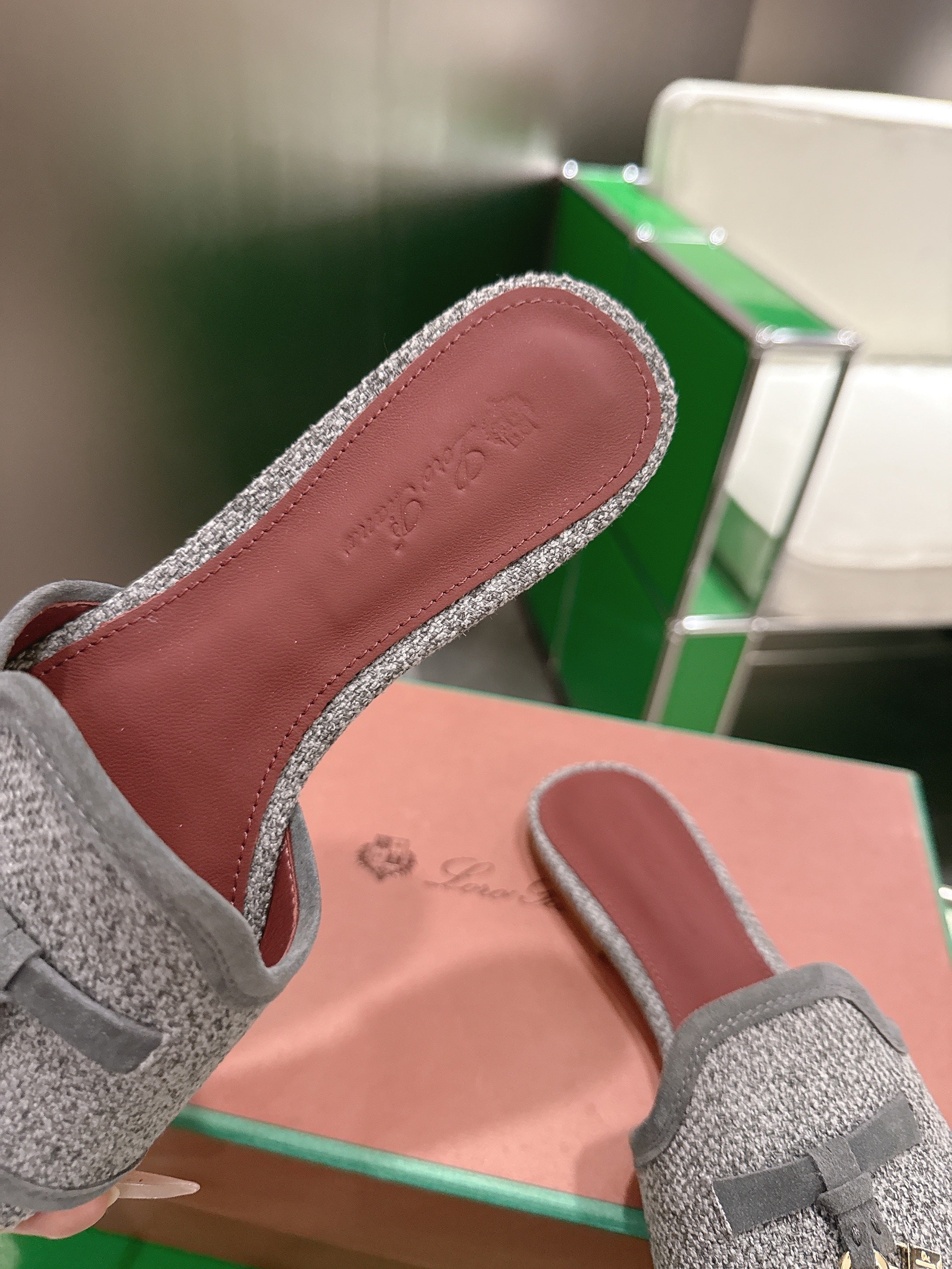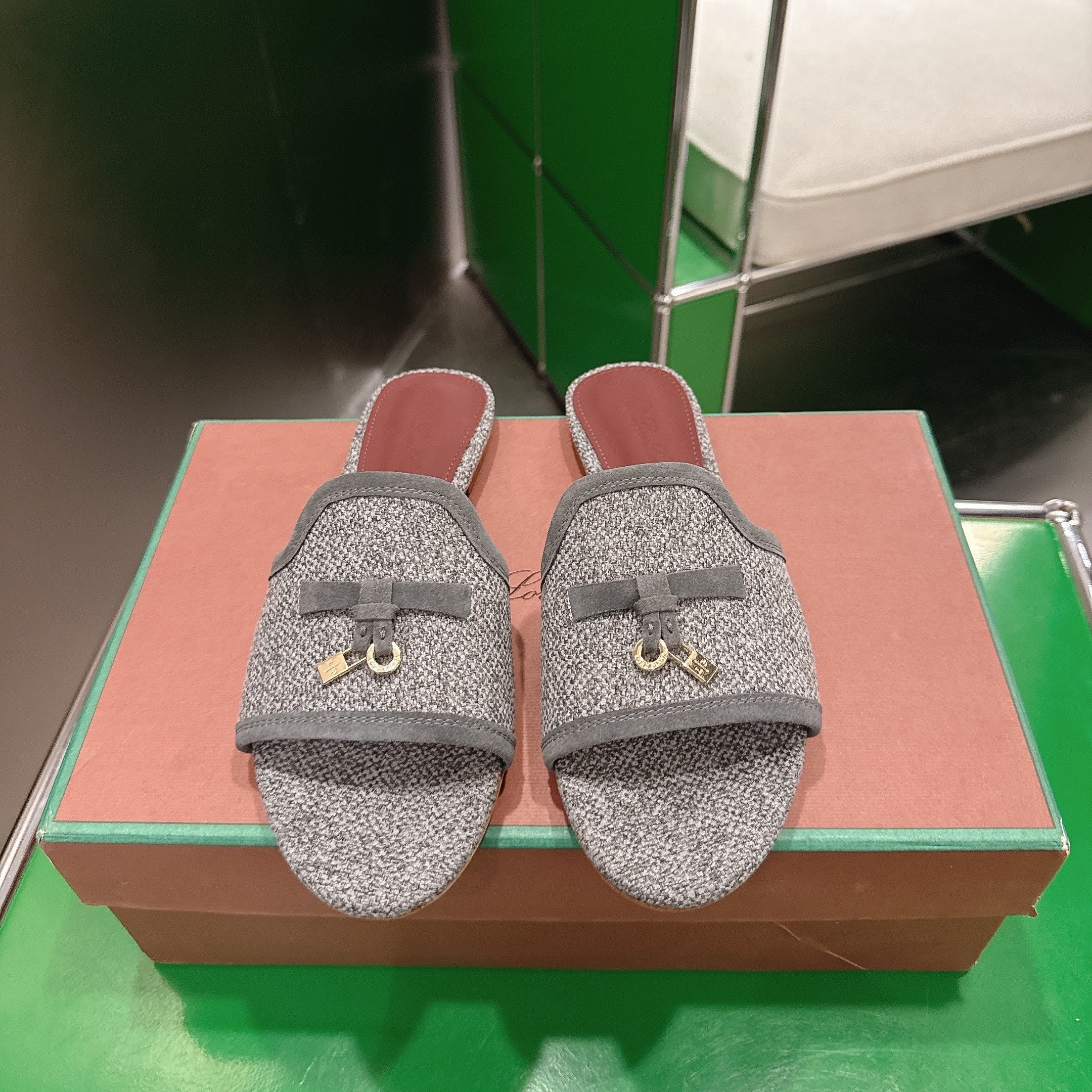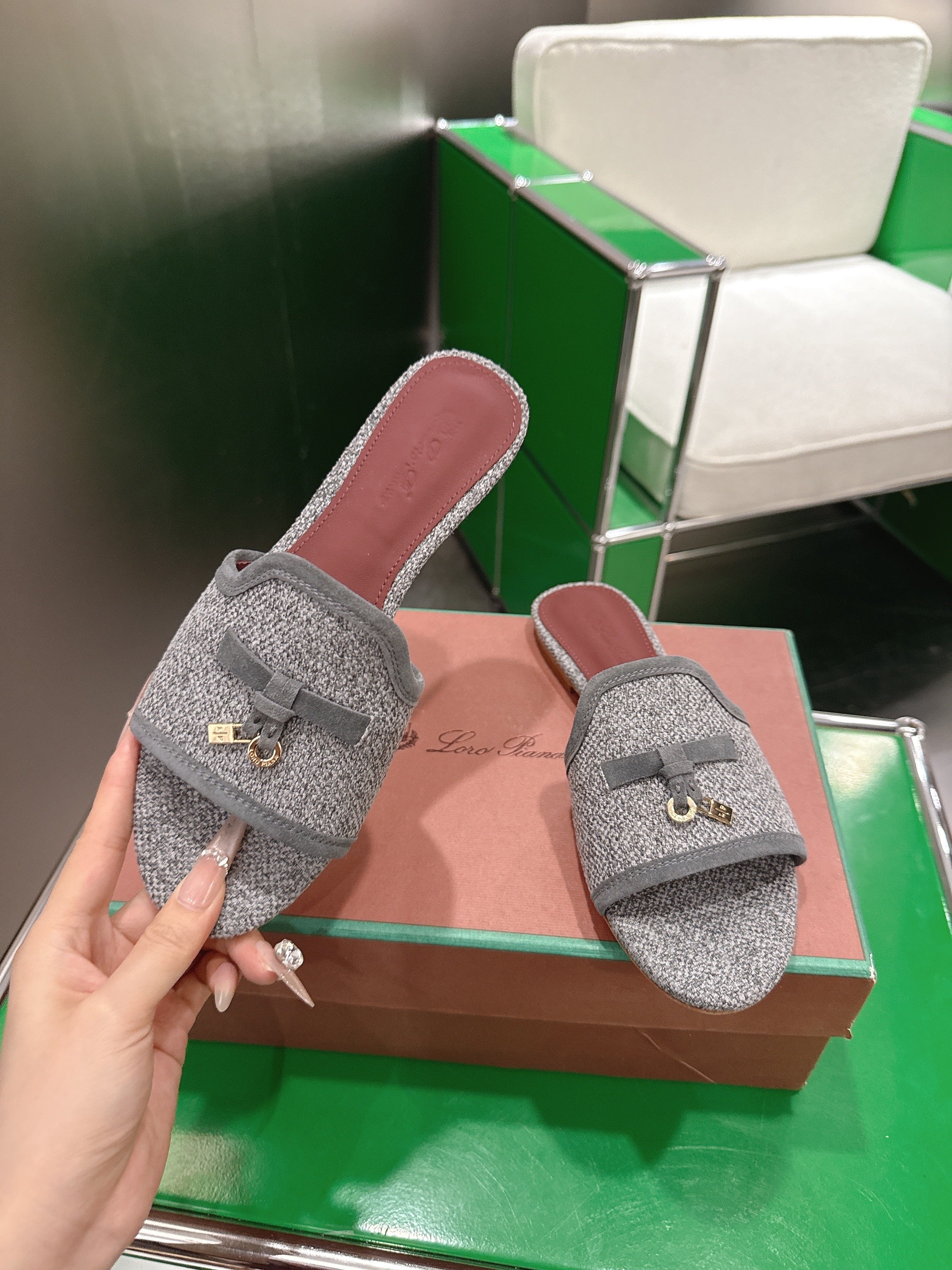 Loro Piana 26 Slippers Gray Wish Sheepskin Fabric 632135