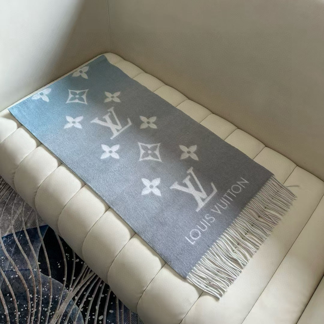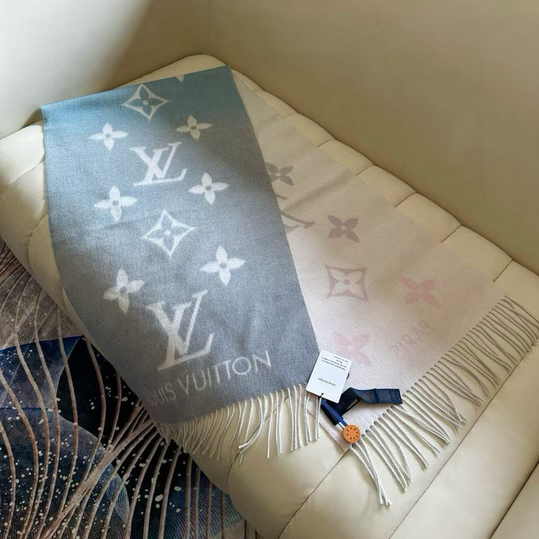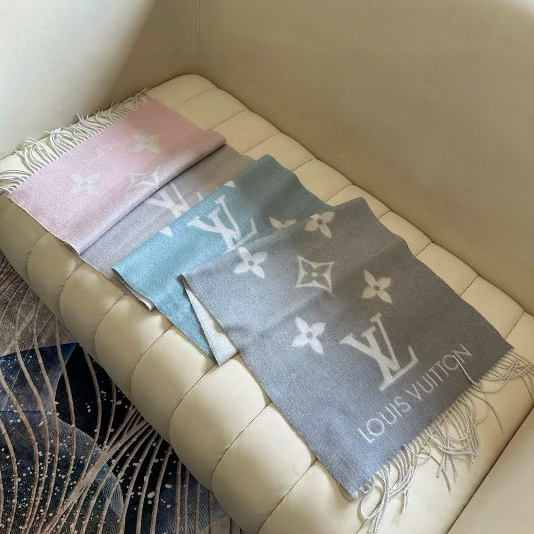LV Gradient Pure Scarf 190cm Pastel Pink Blue Tones Cashmere 150396