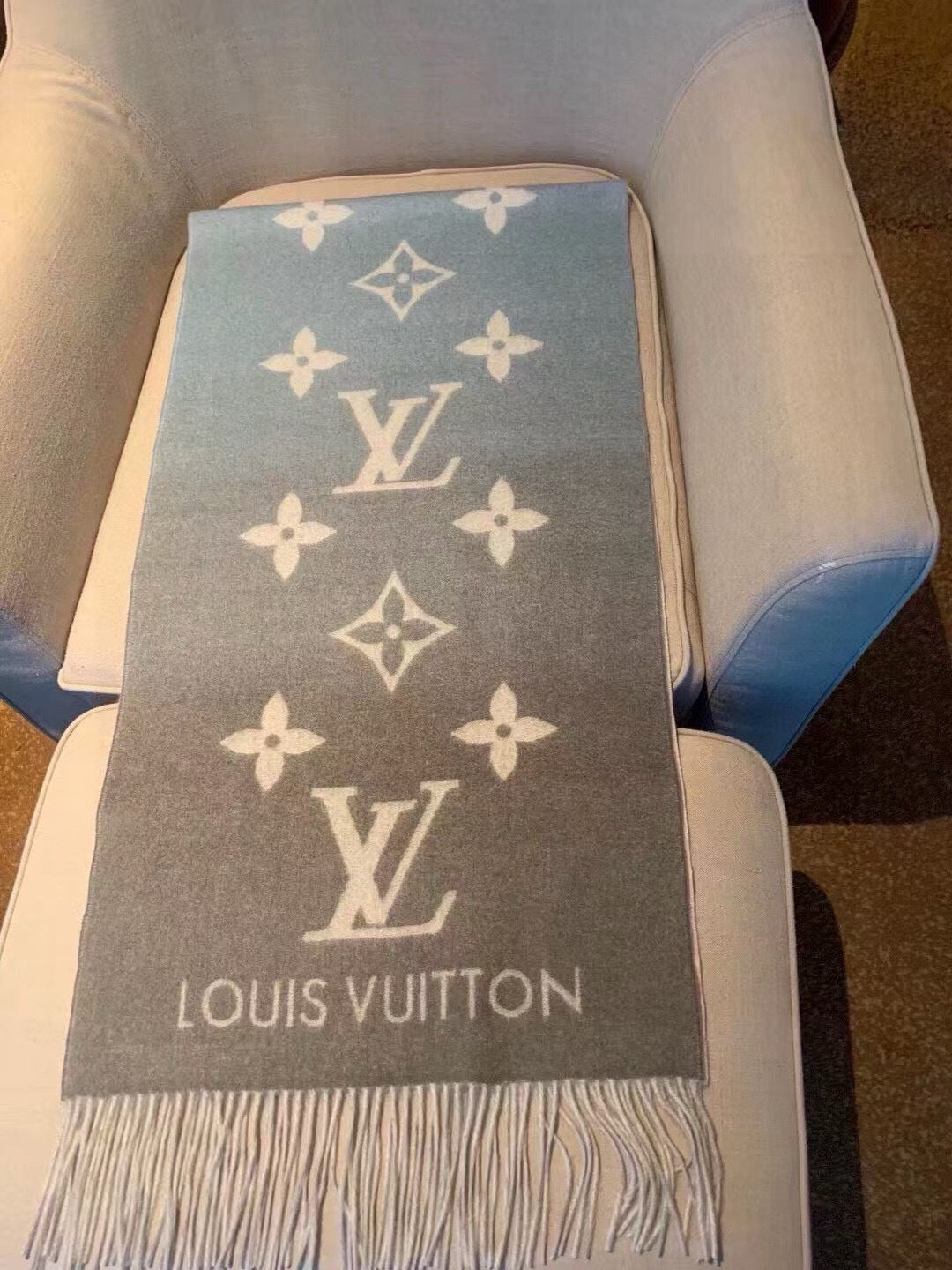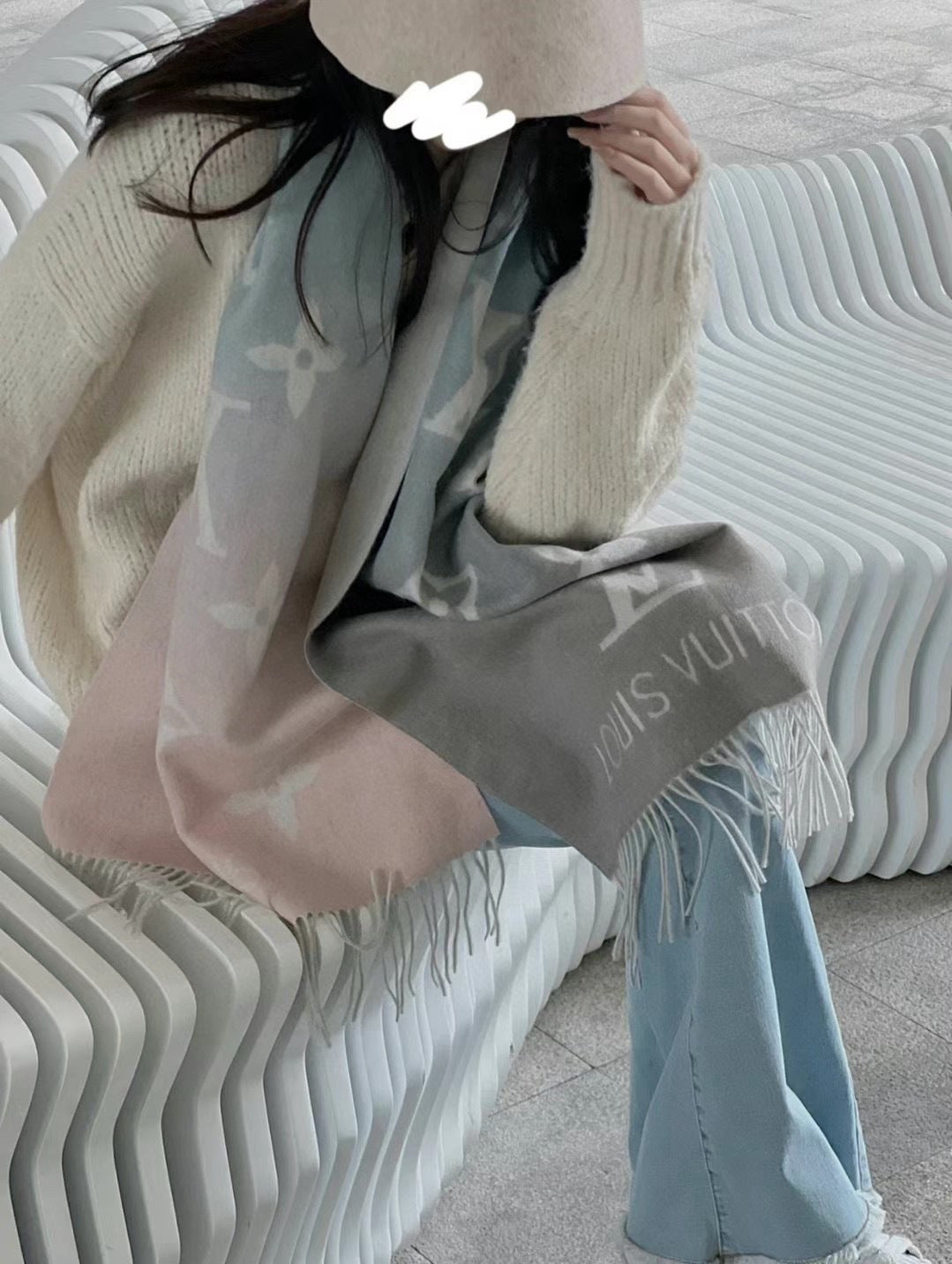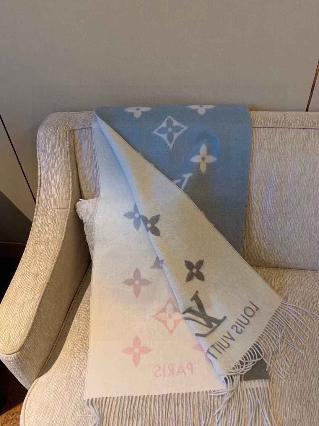 LV Gradient Pure Scarf 190cm Pastel Pink Blue Tones Cashmere 150396