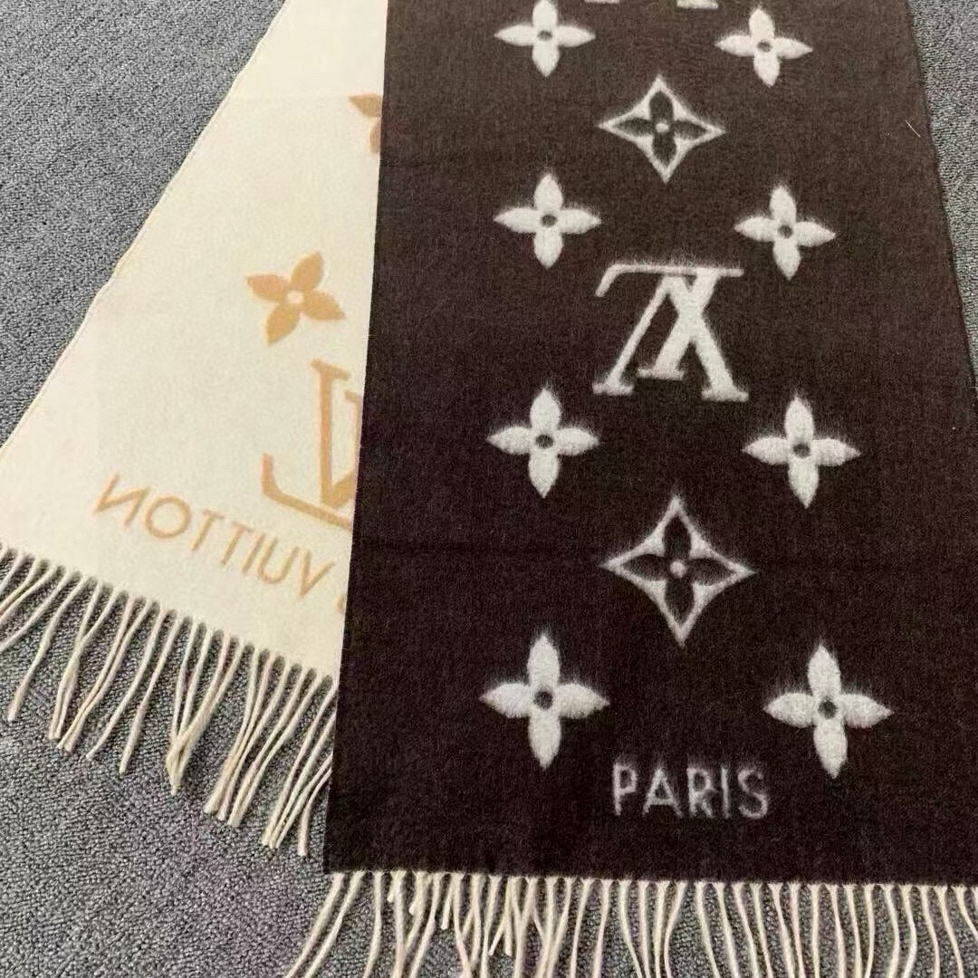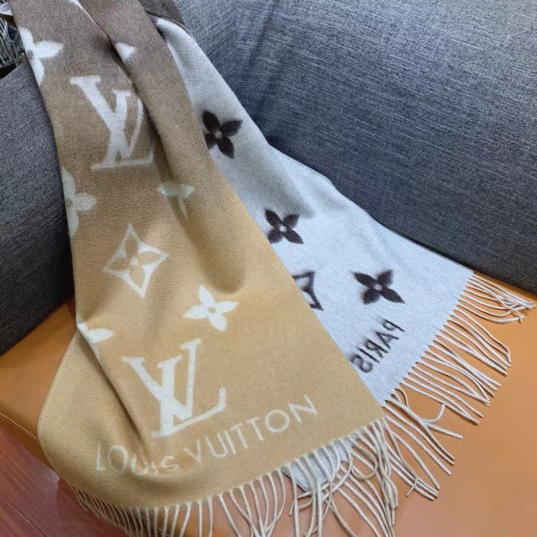LV Gradient Pure Scarf 190cm Sable Beige Brown Cashmere 150397