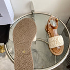 LYMPIA SANDAL IN WHITE TRIOMPHE MACCRAMÉ COTTON AND TAN CALFSKIN