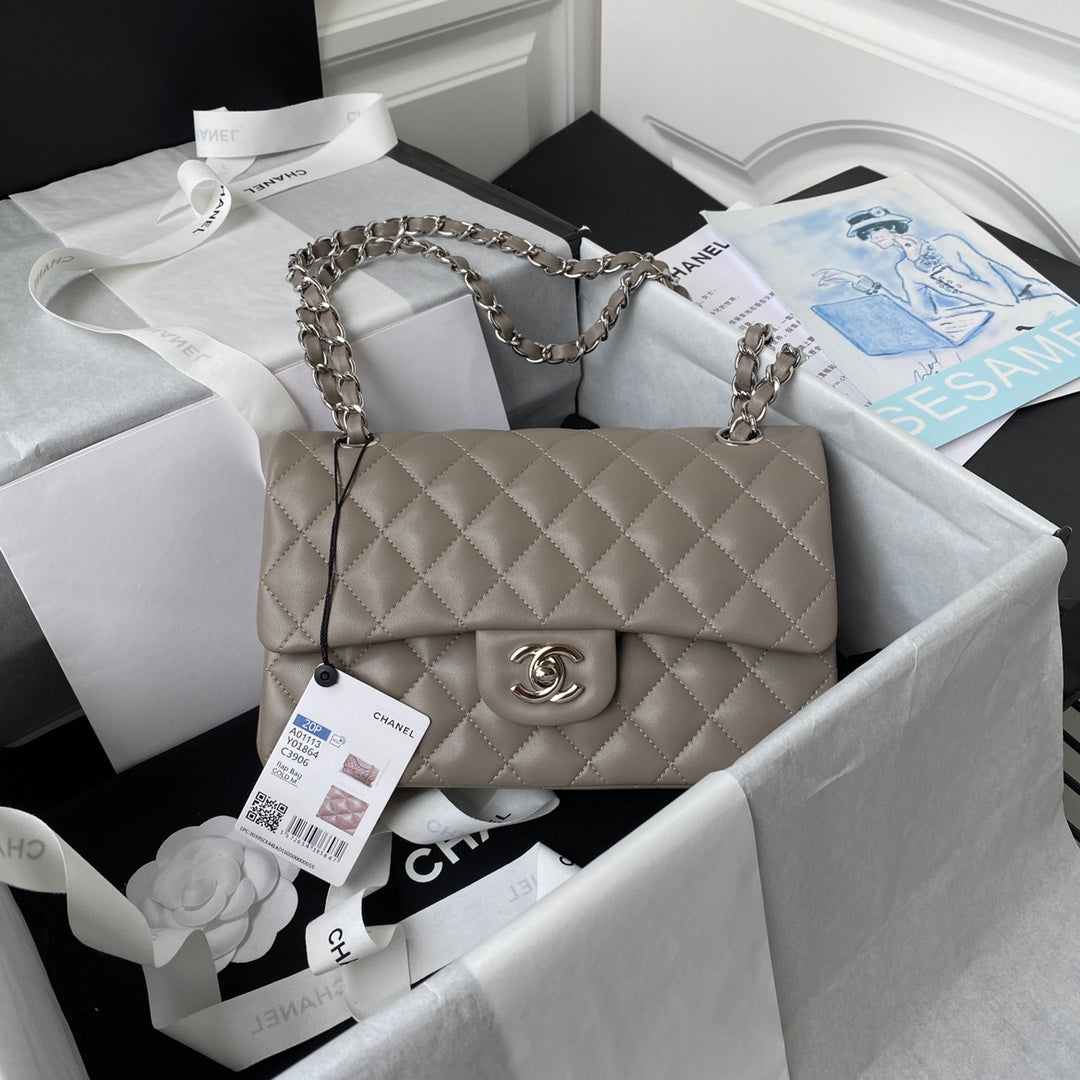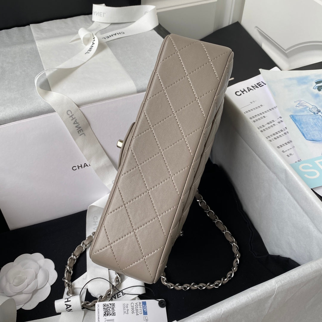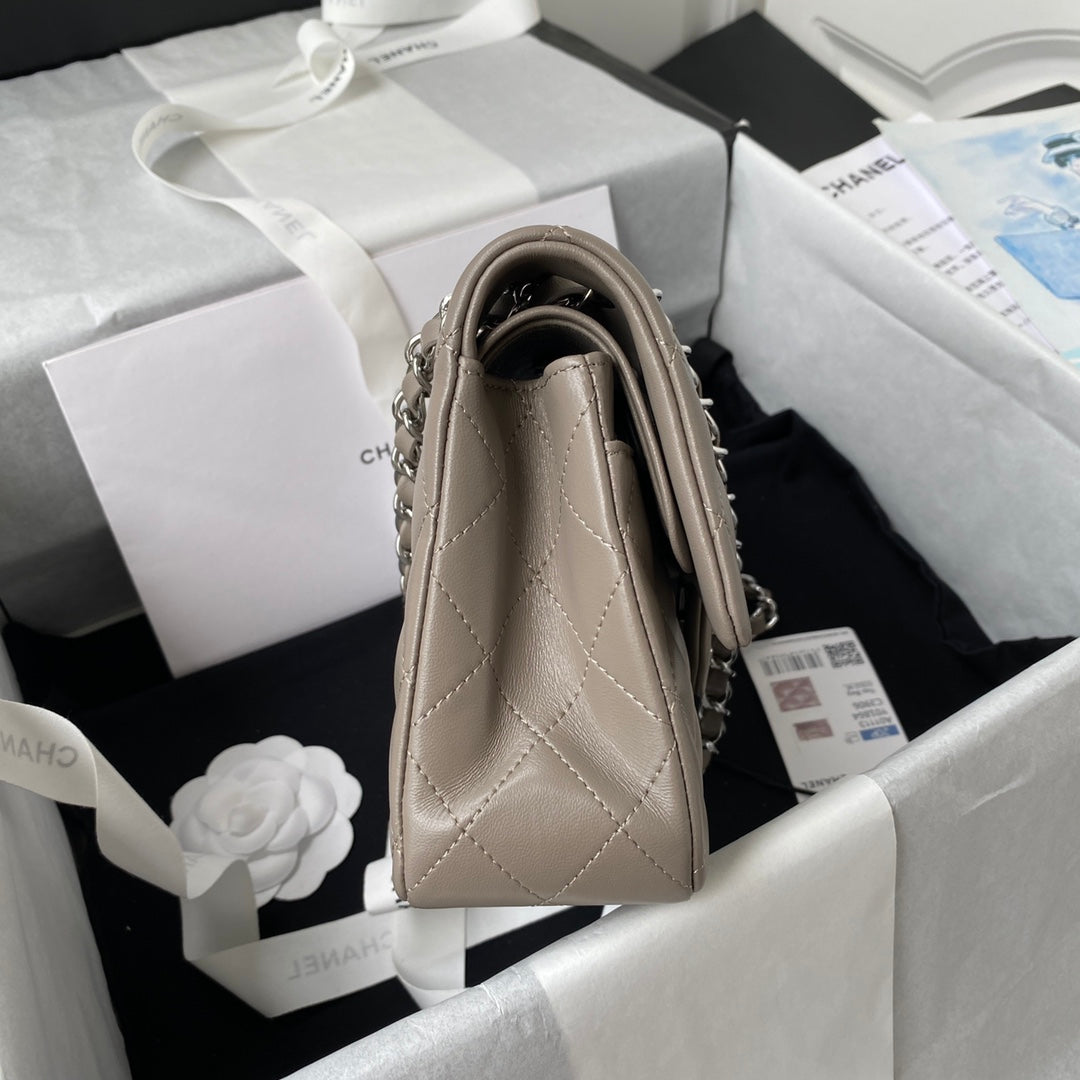 Medium Classic Flap Bag 23cm Brown Lambskin Silver Hardware