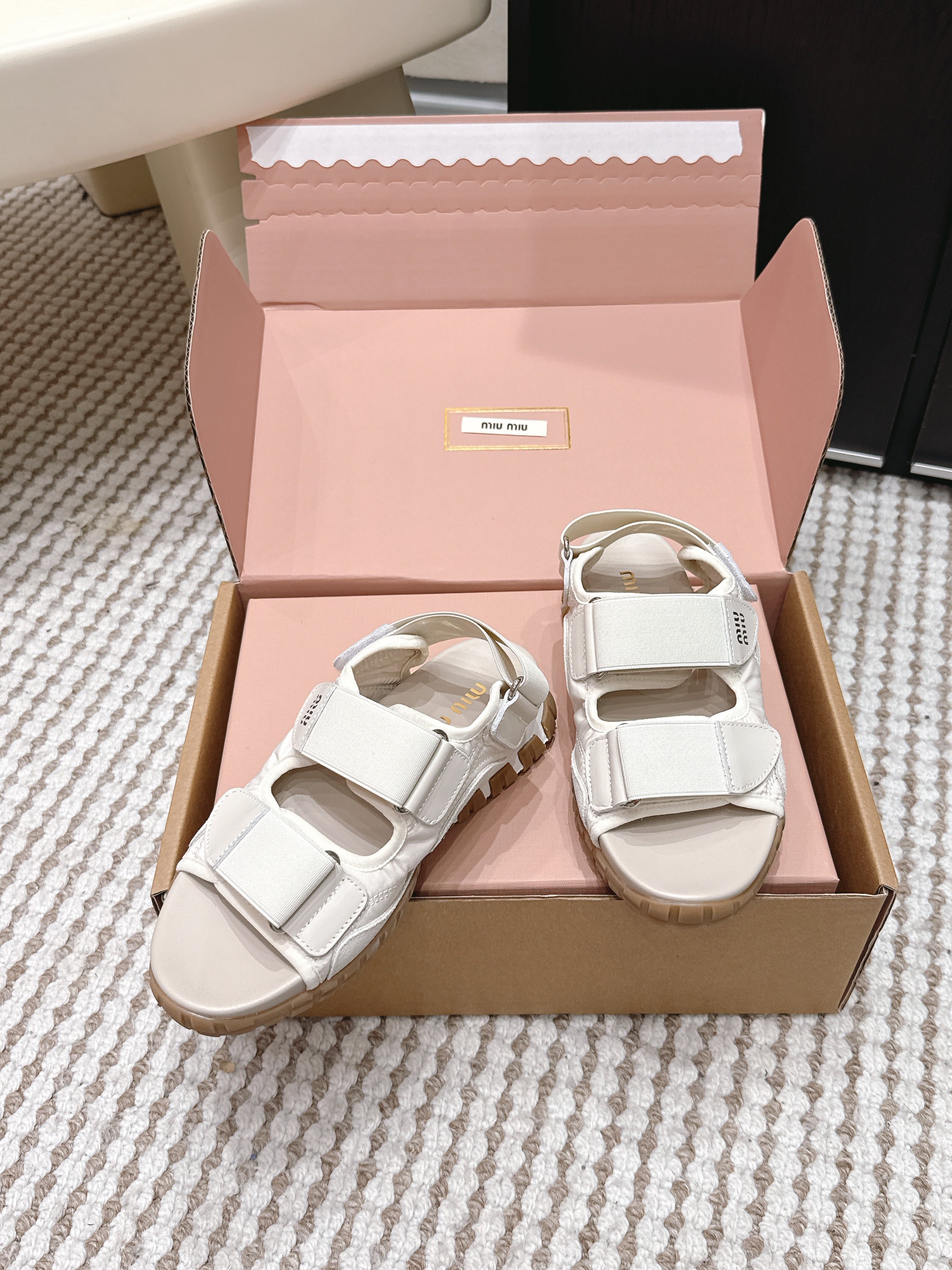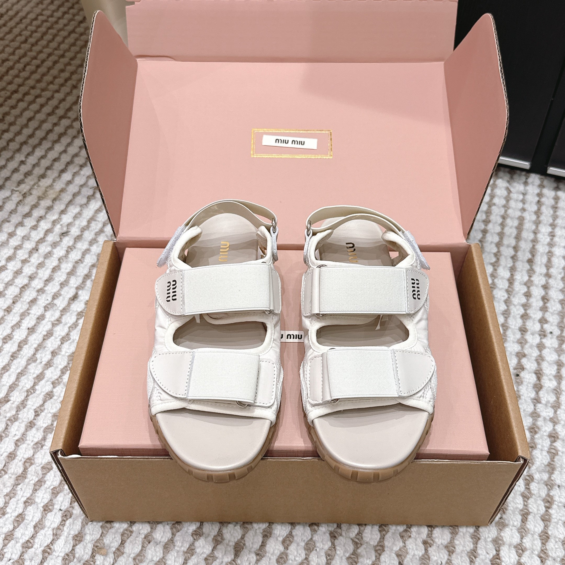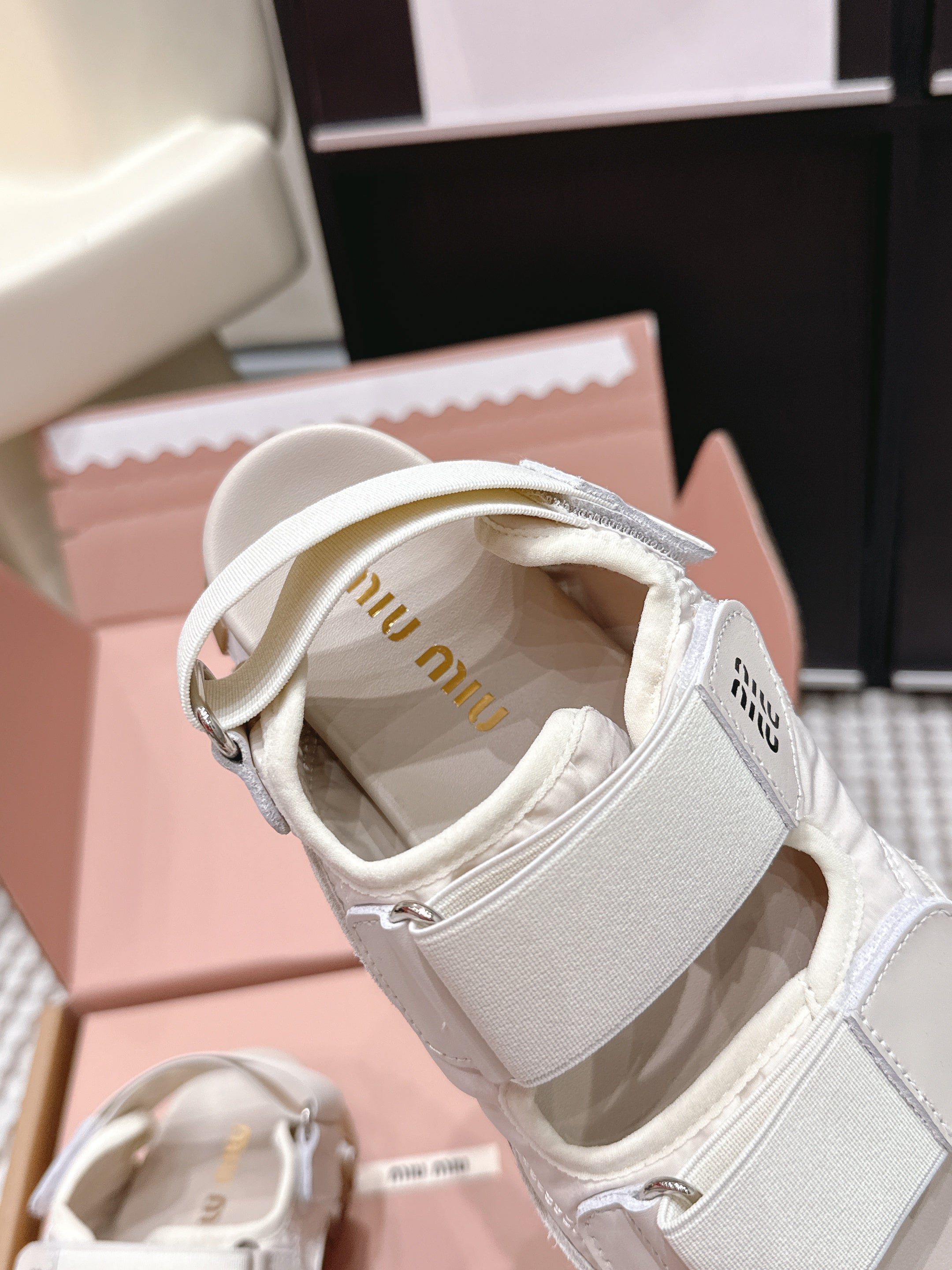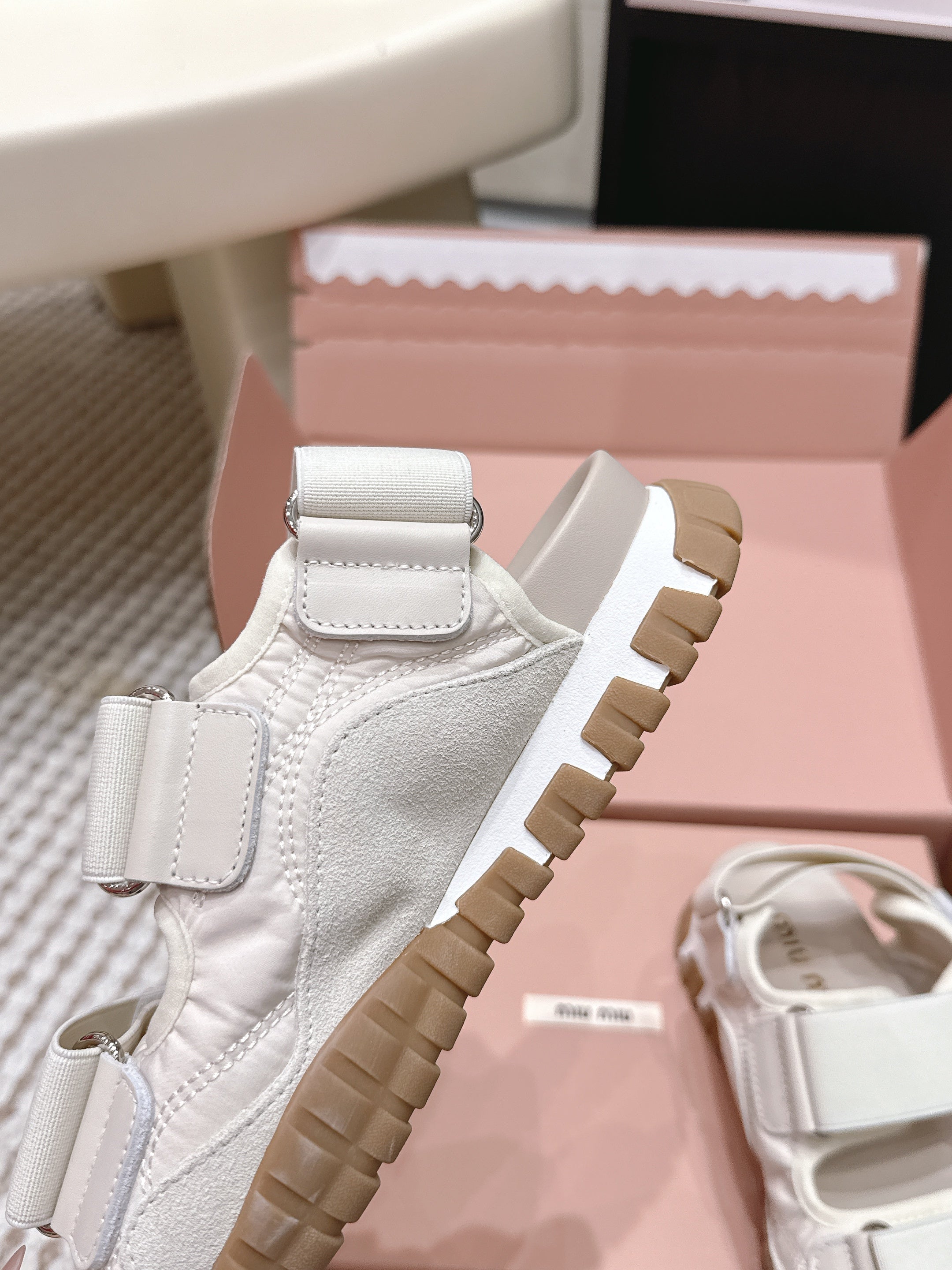 Miu 26s Velcro Sandals Ivory Nylon Suede 632330