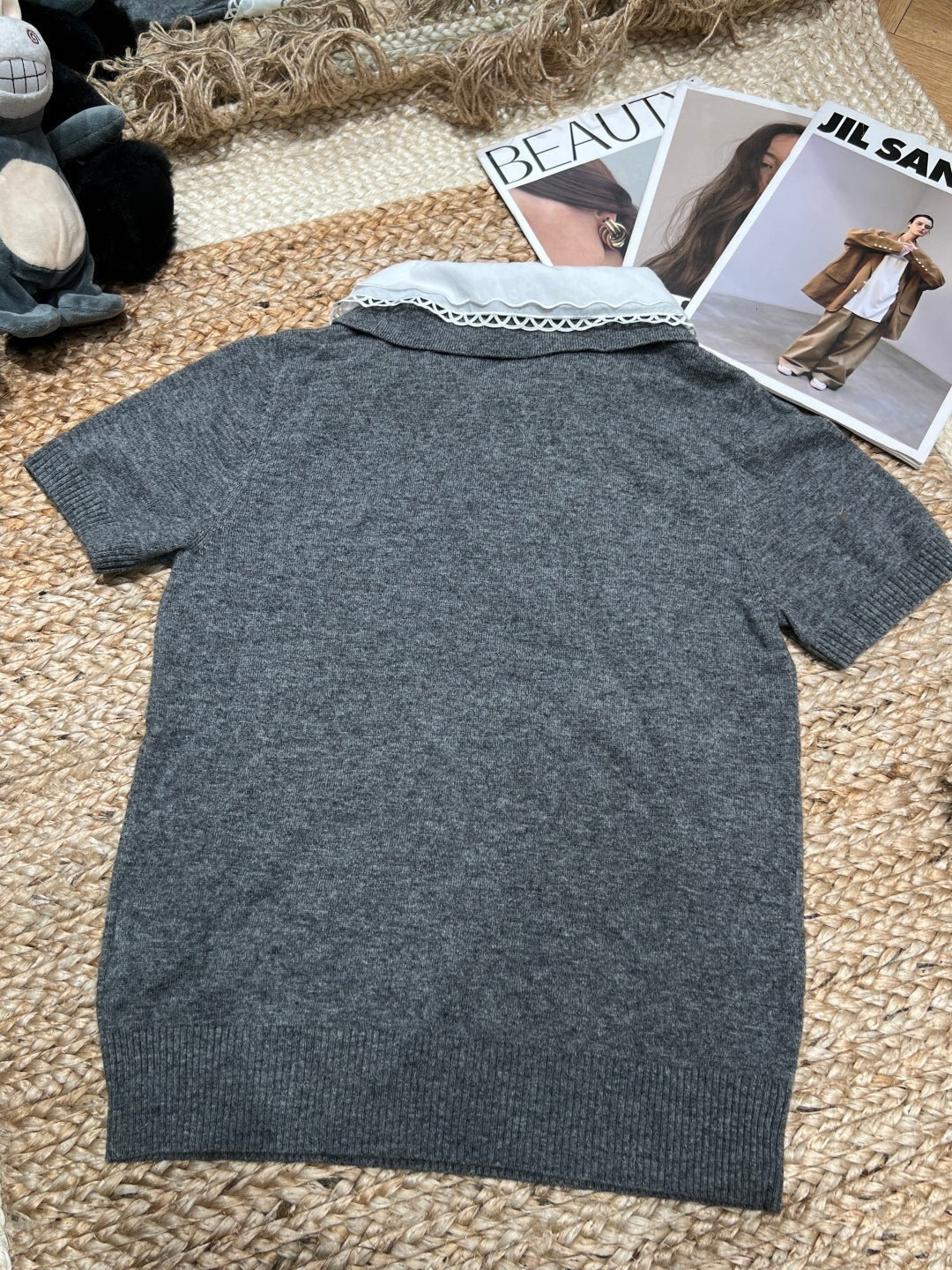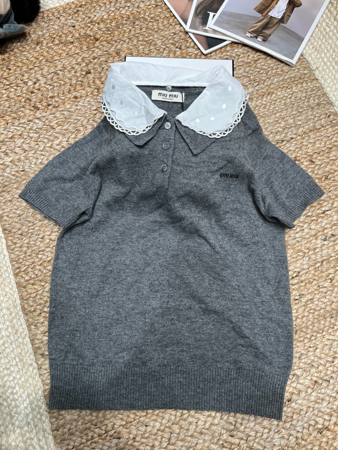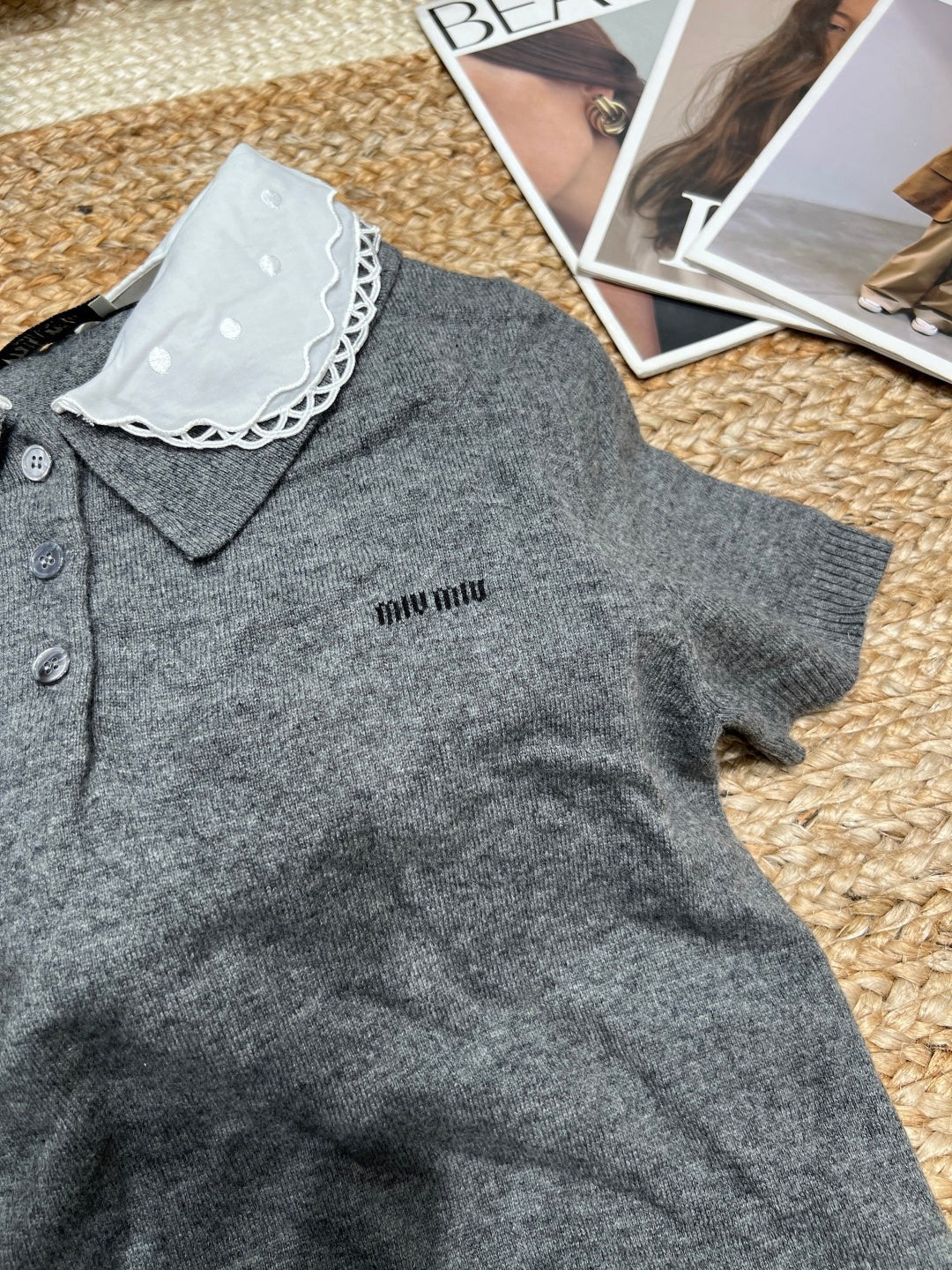 Miumiu 2026 Embroidered Poplin Collar Polo Gray Wool