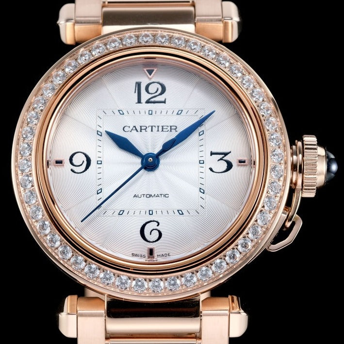pasha 35mm automatic pink gold white dial diamond bezel