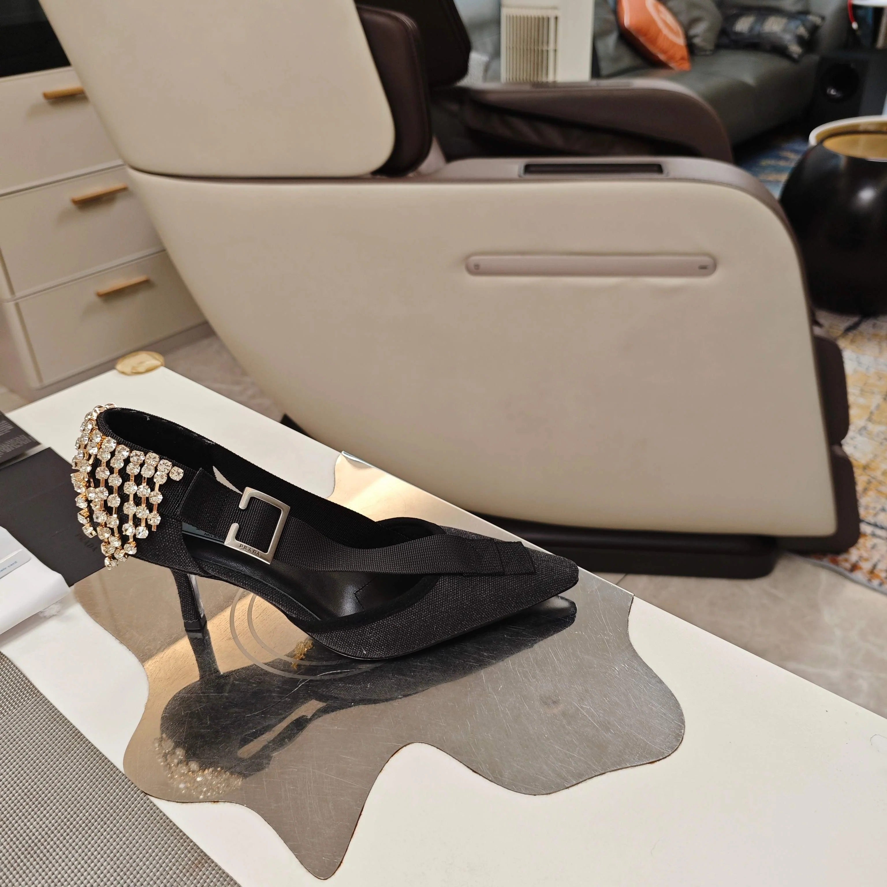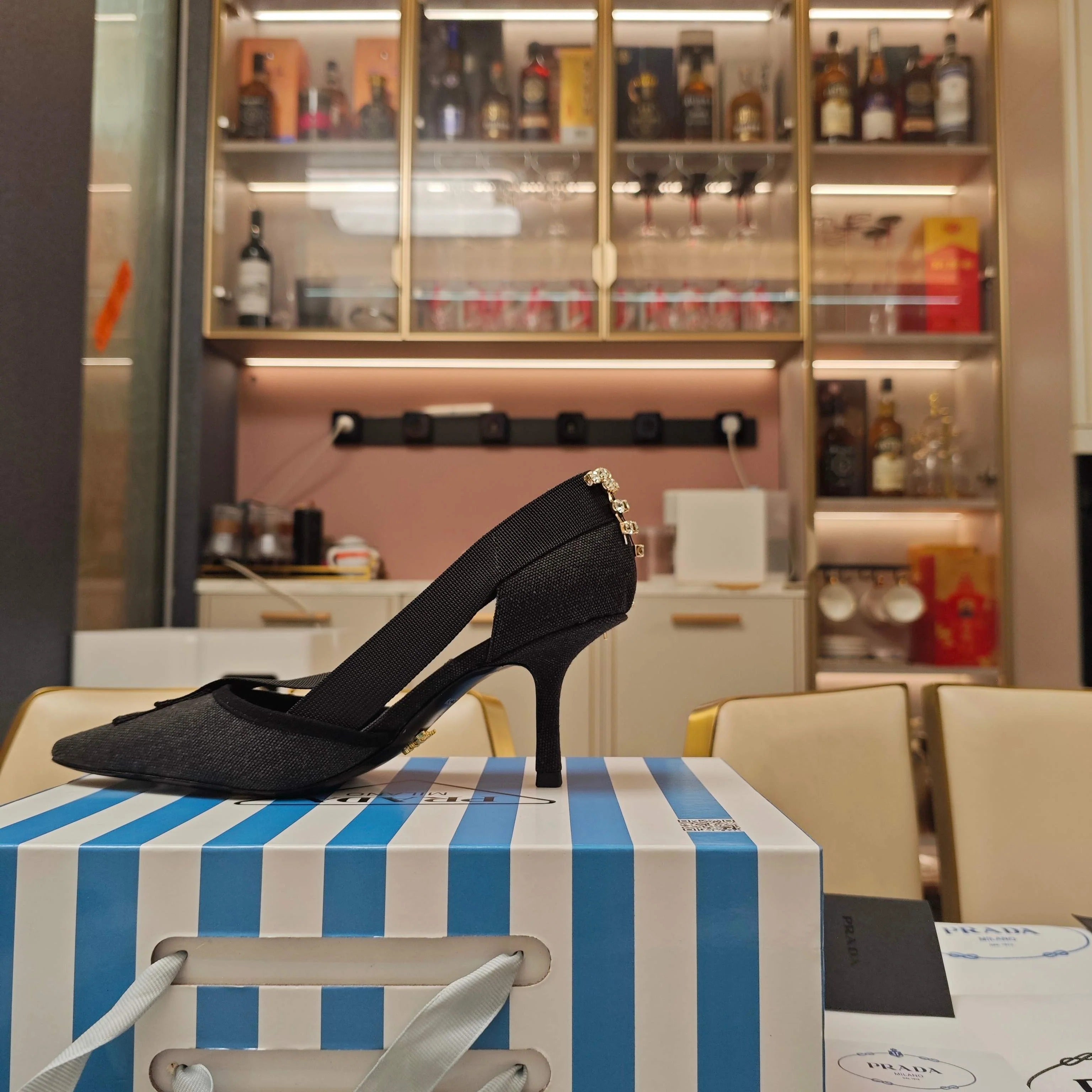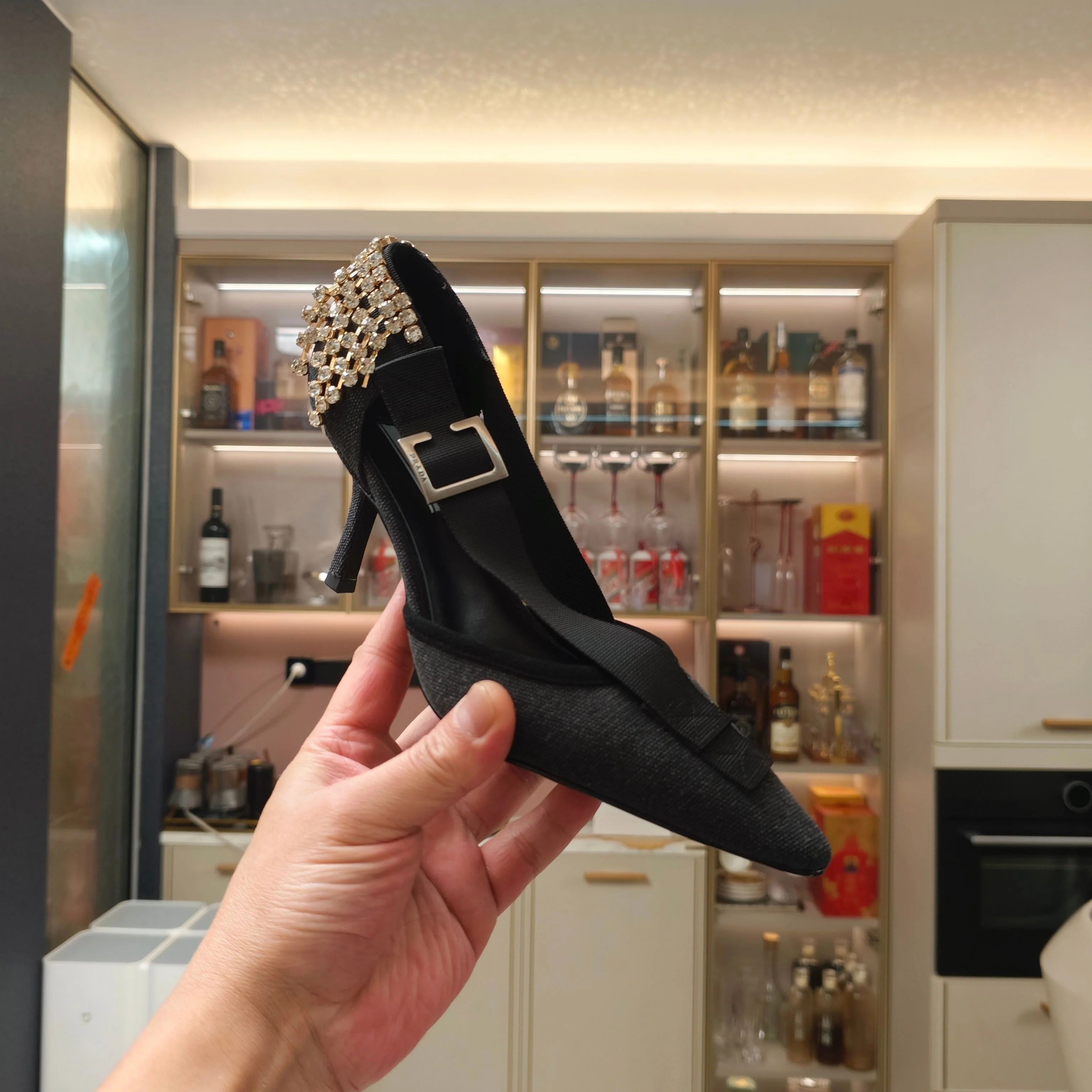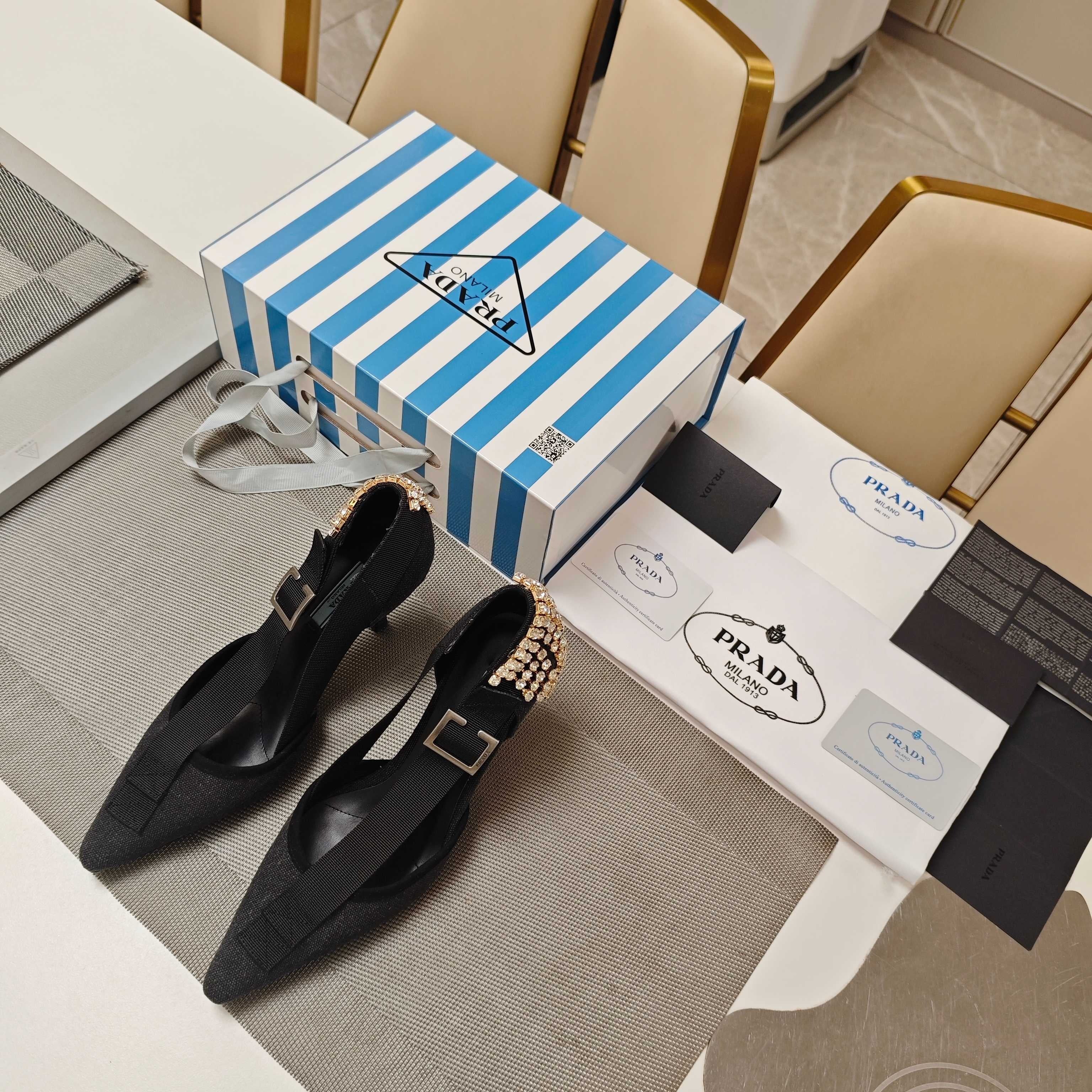 PRA 26S High Heel Pump 70 Black Canvas Rhinestones 630568