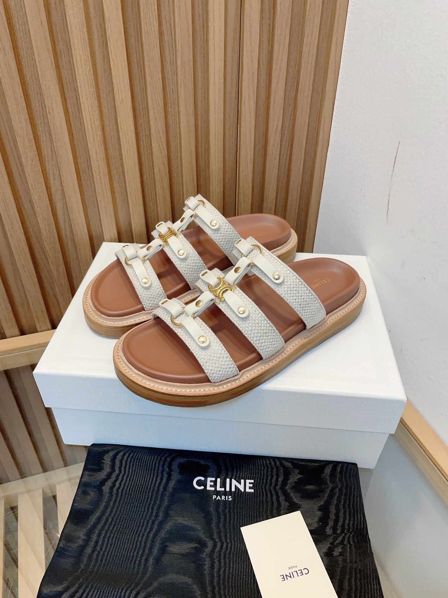 slides tippi white canvas calfskin