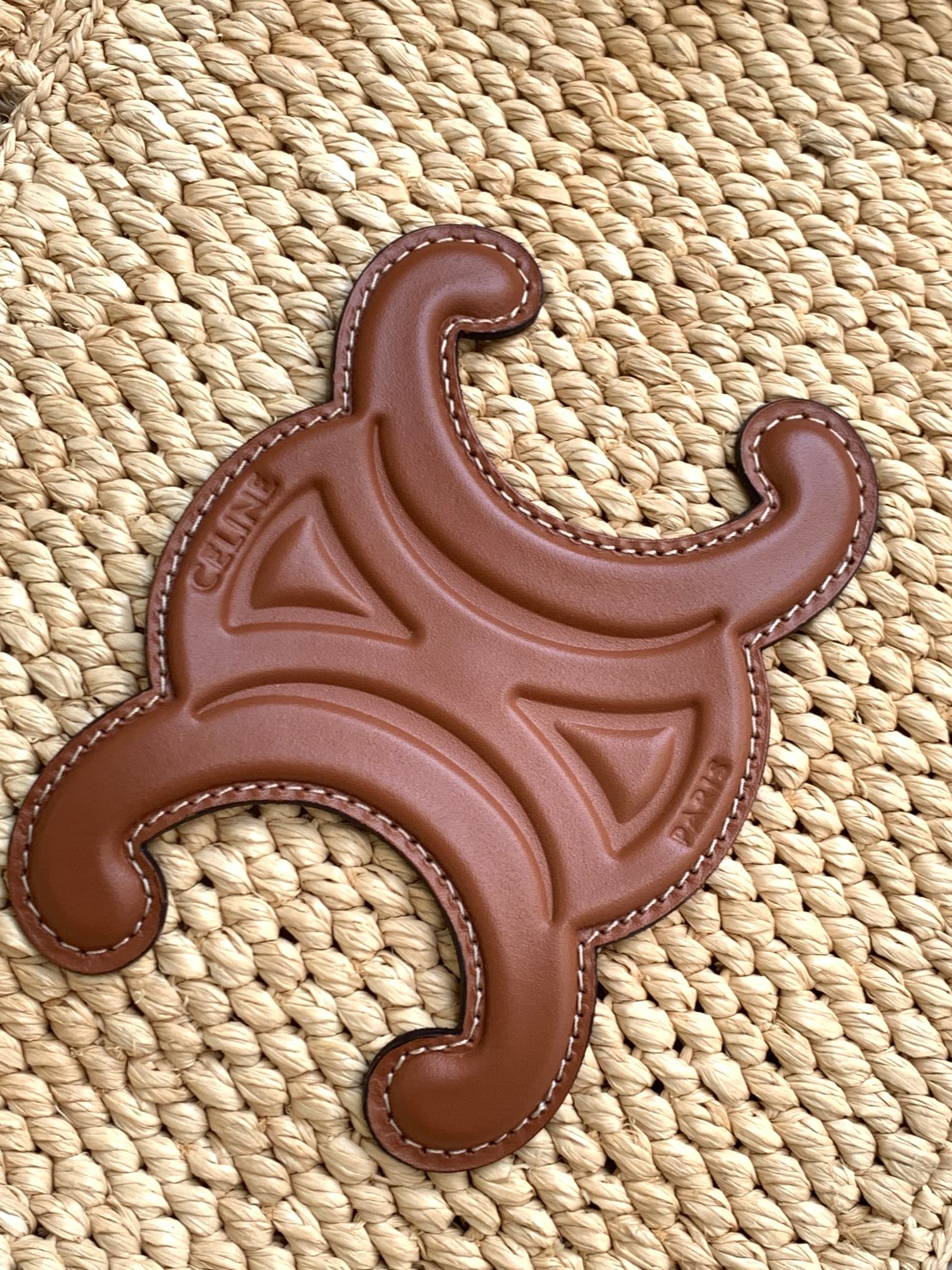 small cabas thais 27cm raffia brown calfskin