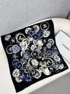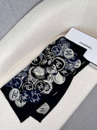 SQUARE SCARF 70 CM IN BLACK MIX WHITE CASHMERE AND SILK 399802