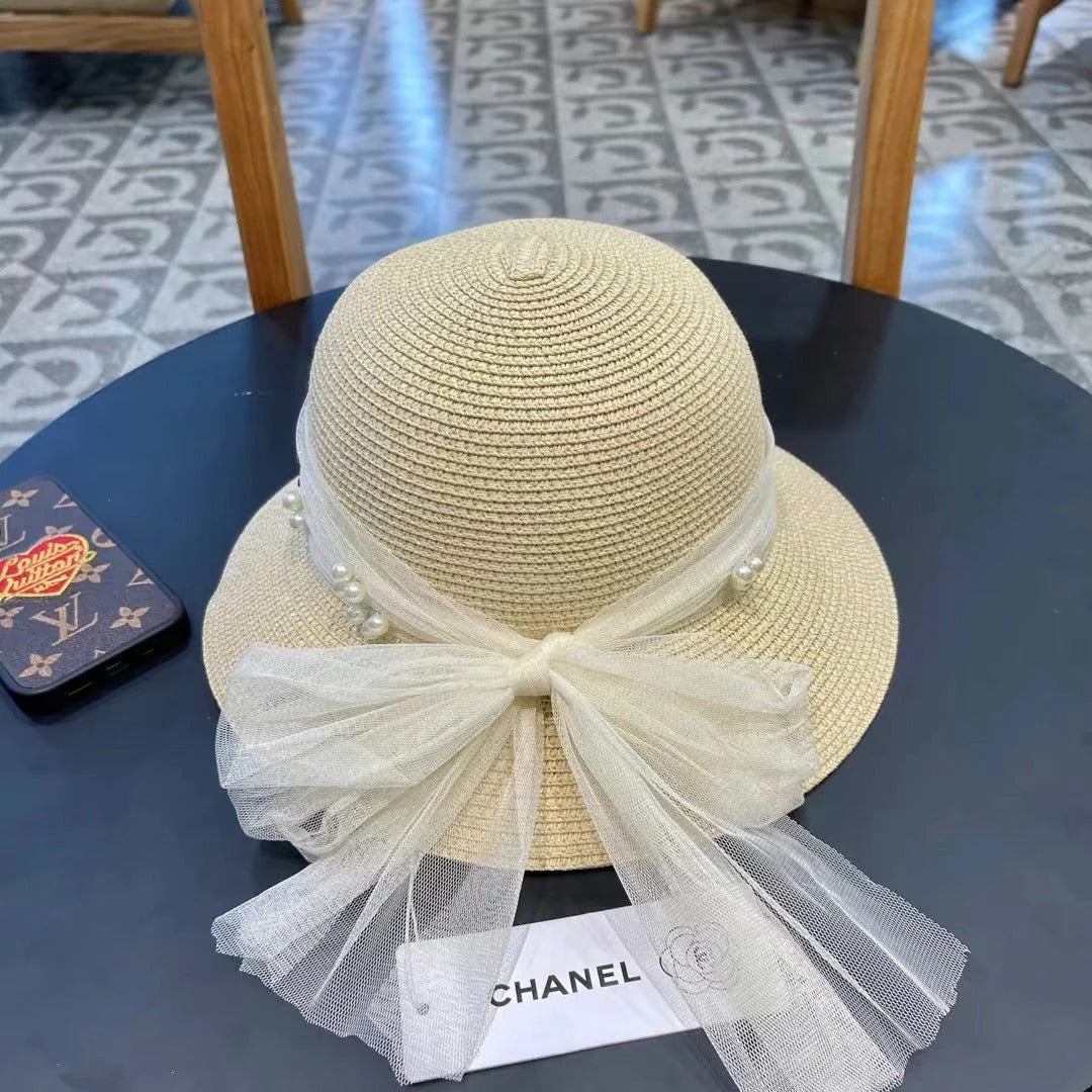 STRAW HAT BOW WITH PEARL IVORY 672698
