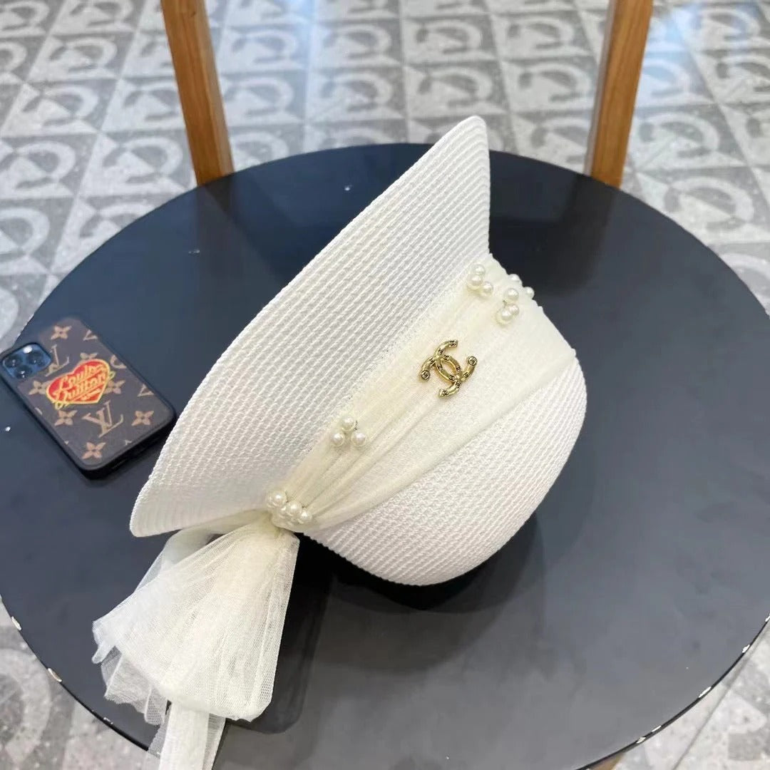 STRAW HAT BOW WITH PEARL WHITE 672700