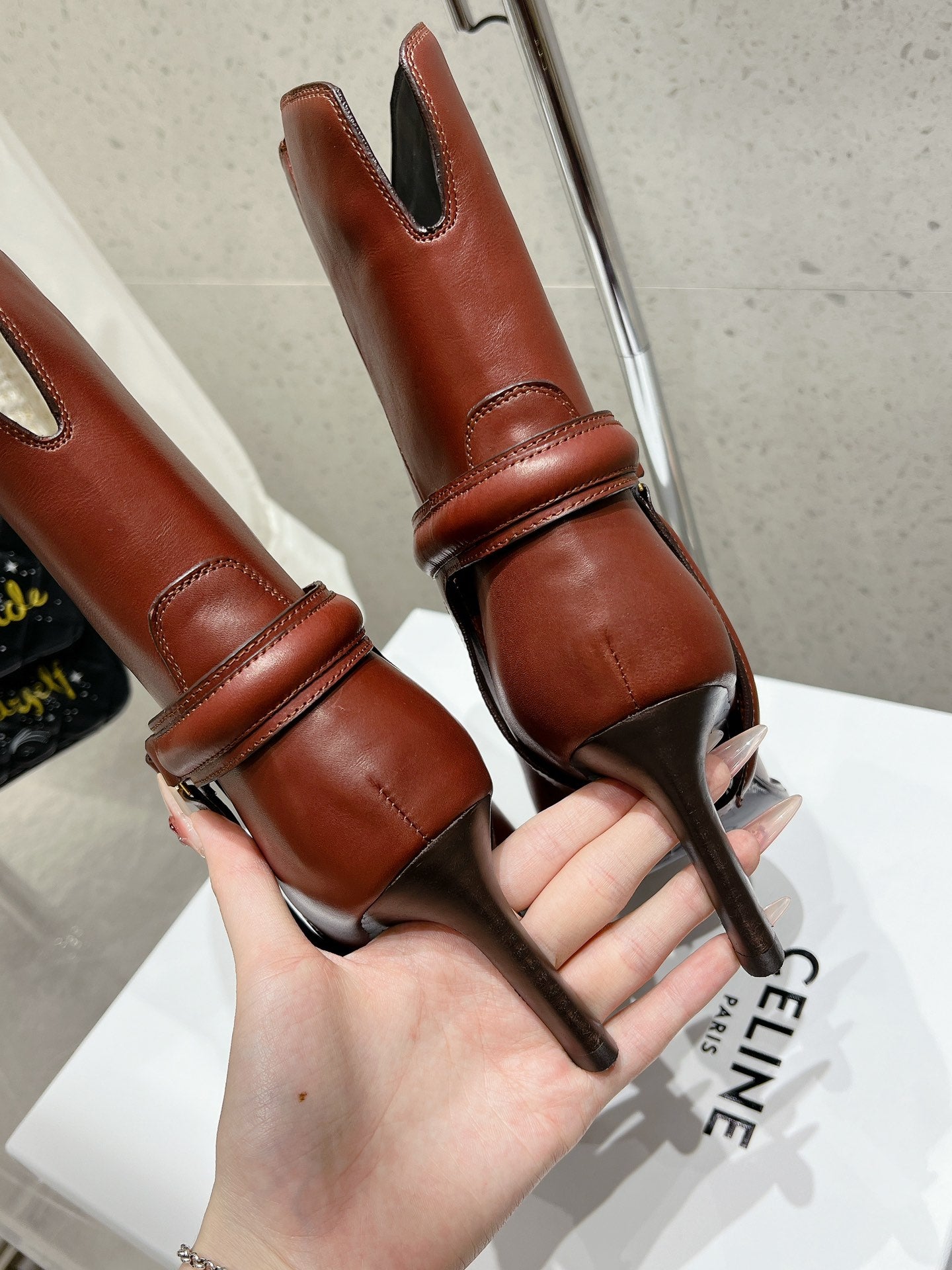 VERNEUIL ANKLE BOOT WITH TRIOMPHE IN RED BROWN CALFSKIN