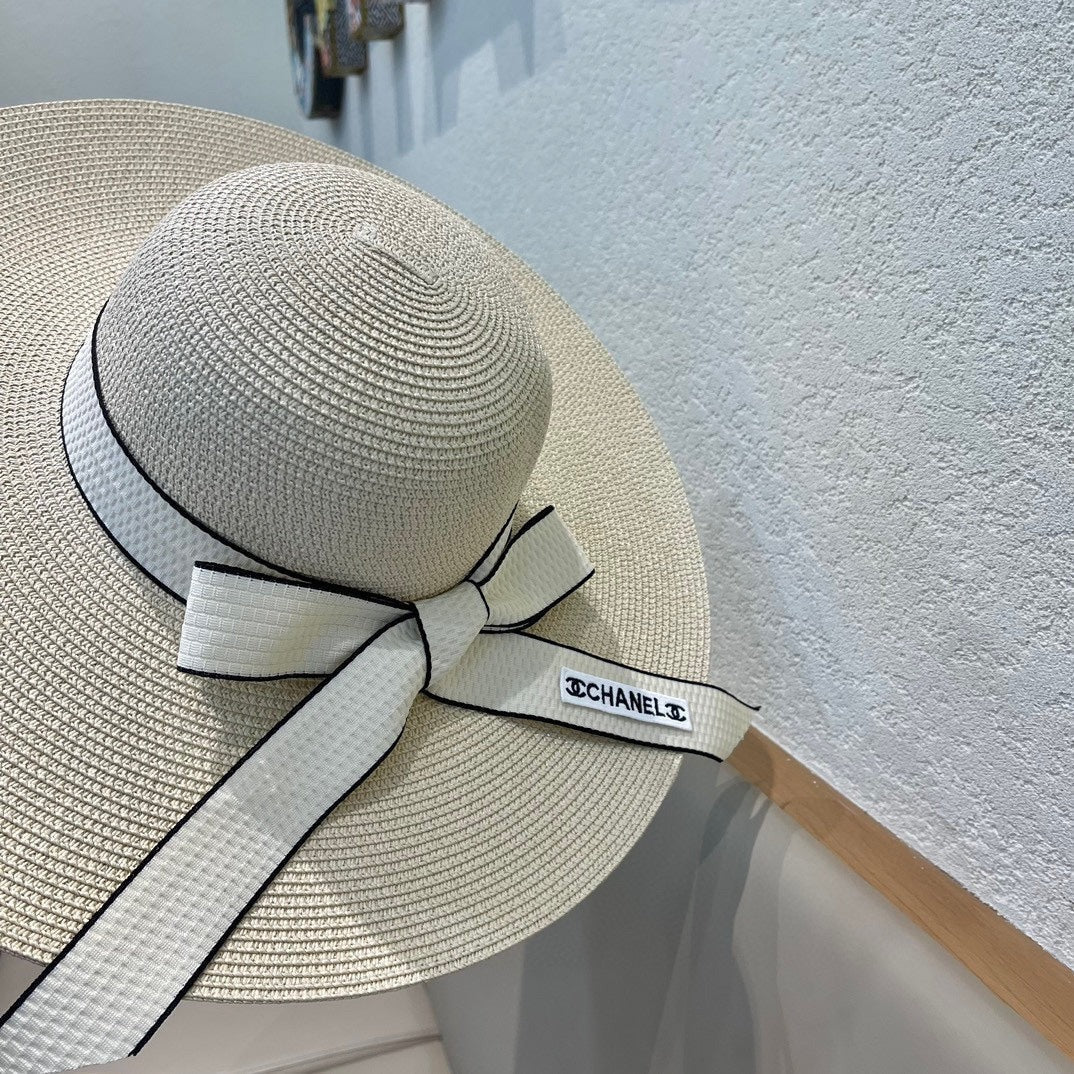 WIDE BRIM STRAW HAT WITH BOW BEIGE 672706