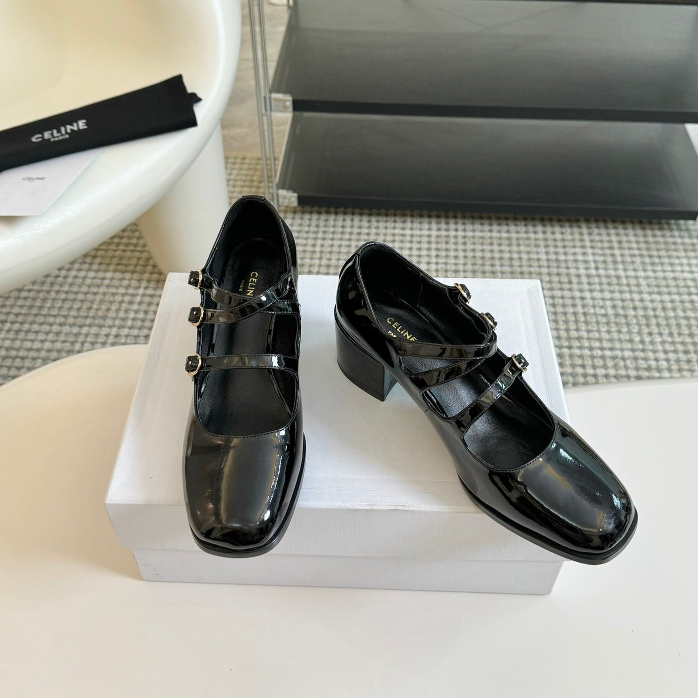 WOMEN'S SANDALS WITH ROUND TOE GLOSSY BLACK SPECIFIC COWHIDE