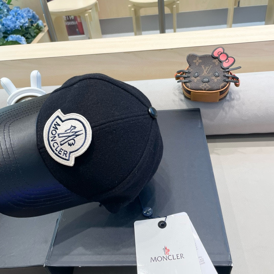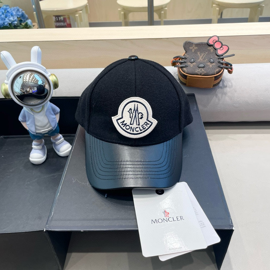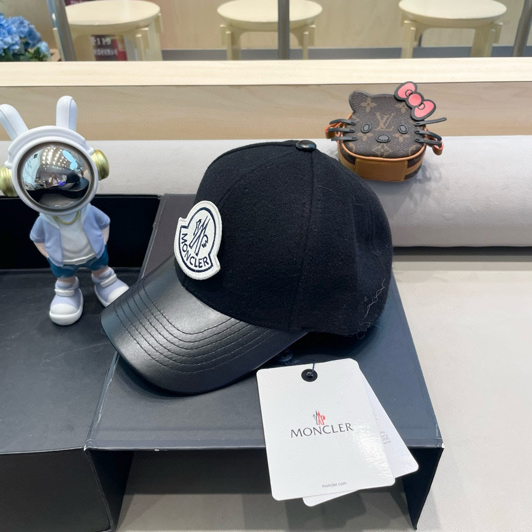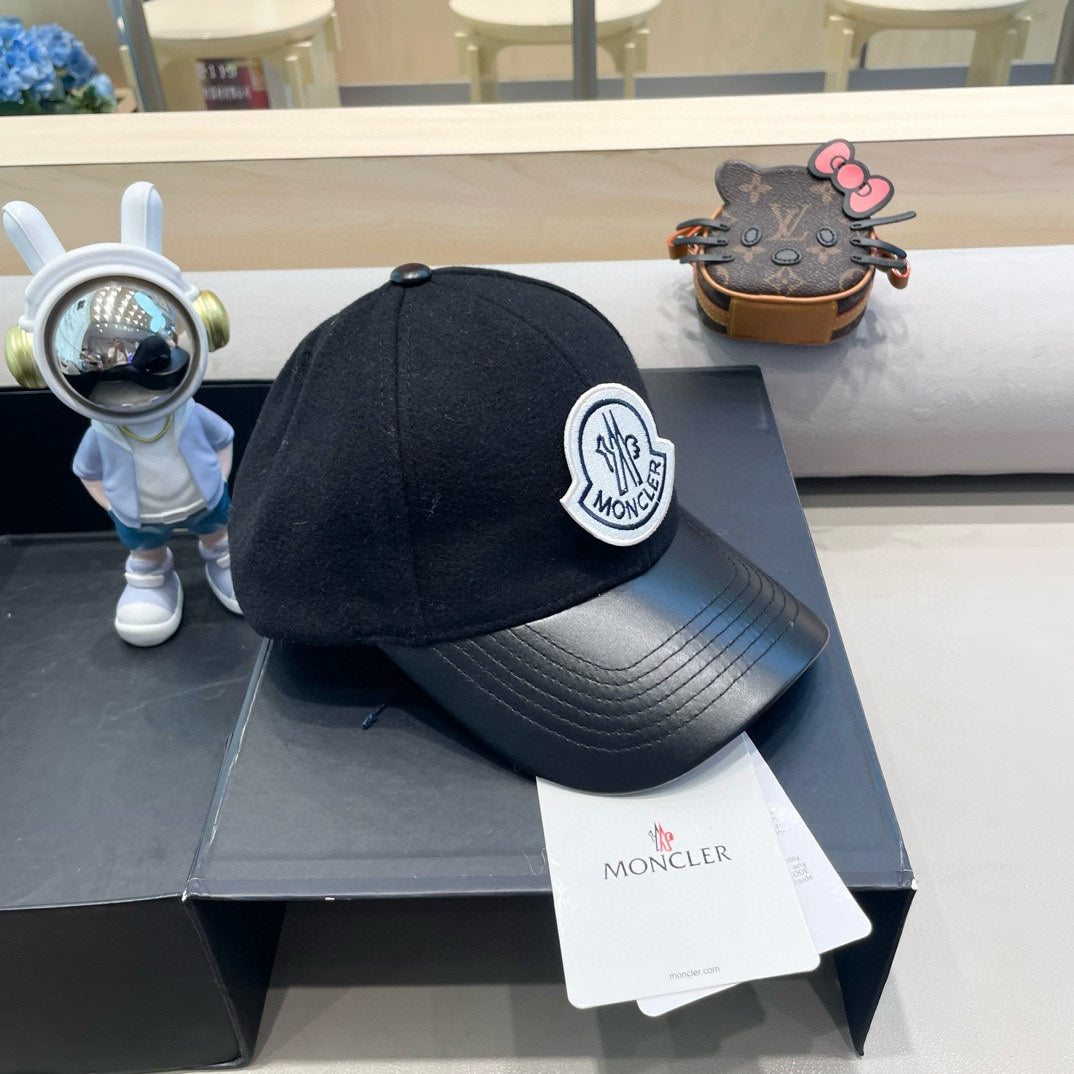 WOOL-TWEED AND LEATHER BASEBALL CAP BLACK 428237