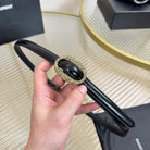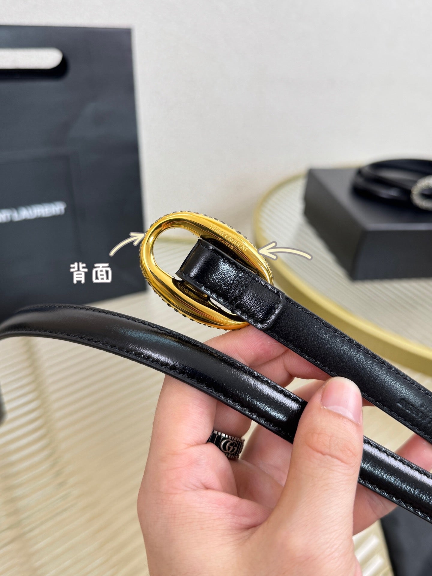 YSL 1.5 Gold Oval Buckle Belt Black Leather 200475